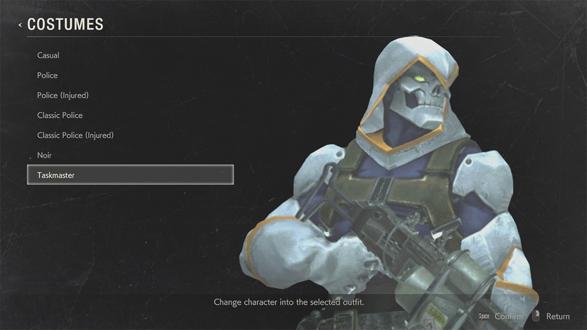 This mod will replace Leon’s Arklay Sheriff costume, complete with Taskmaster character costume, skull mask and all...