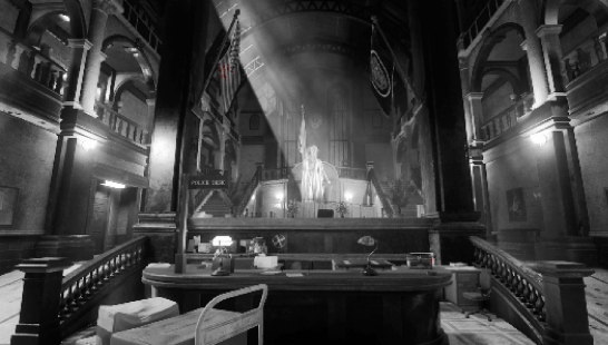 Combine the black and pixelated appearance of Sin City to give Resident Evil 2 Raccoon City.