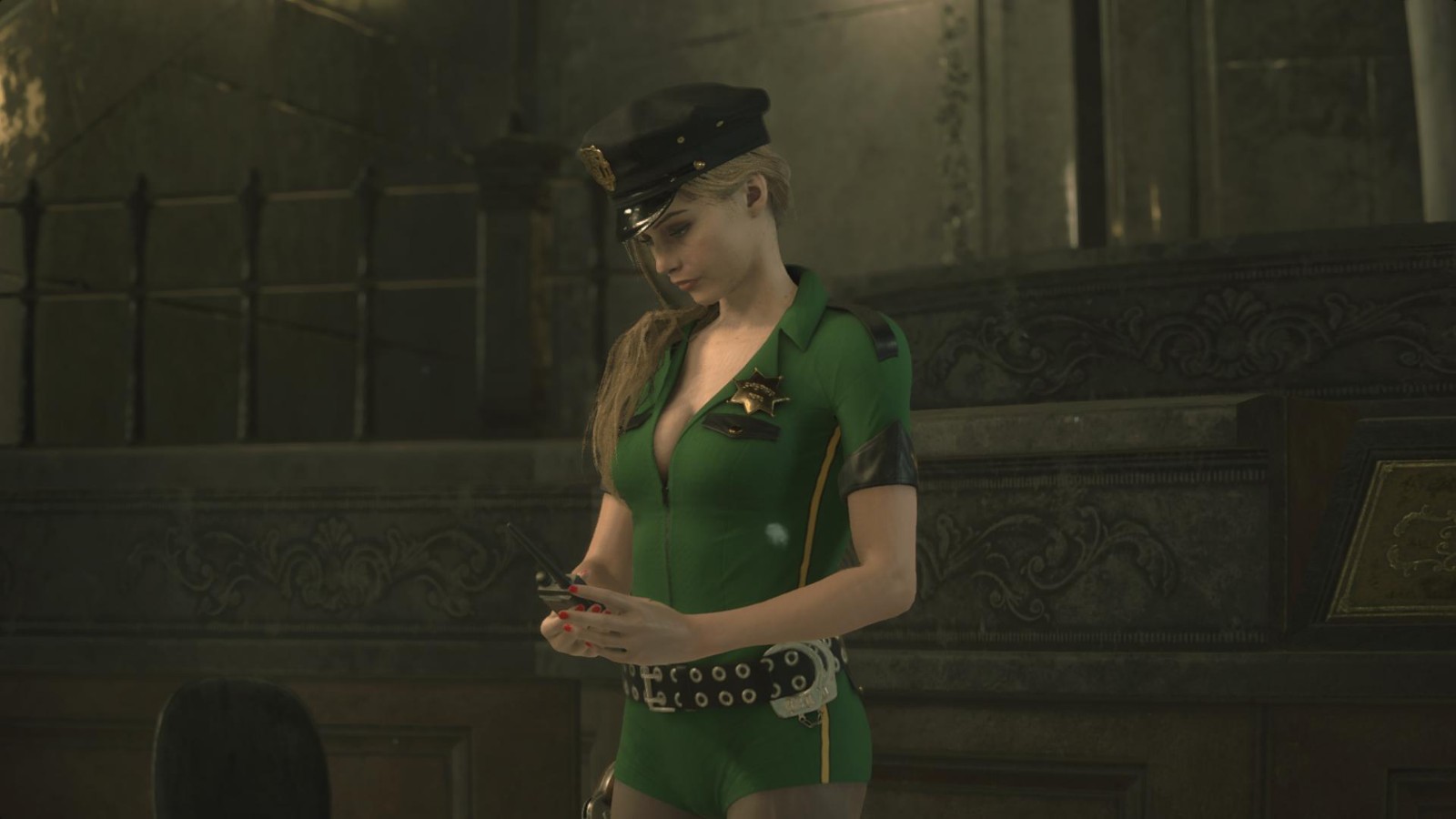 4) The green uniform includes: green hat, tights and red nails. There is also a capless version.