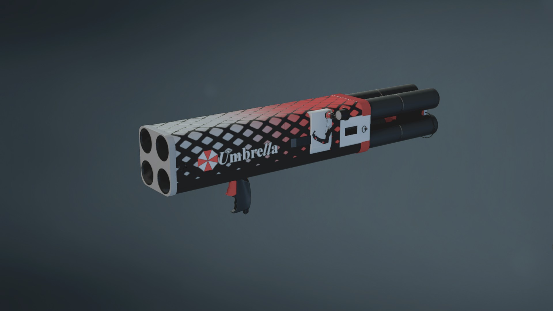 Anti-tank rocket launcher skin: diamond-shaped geometric pattern with umbrella logo. Choose from black or white.