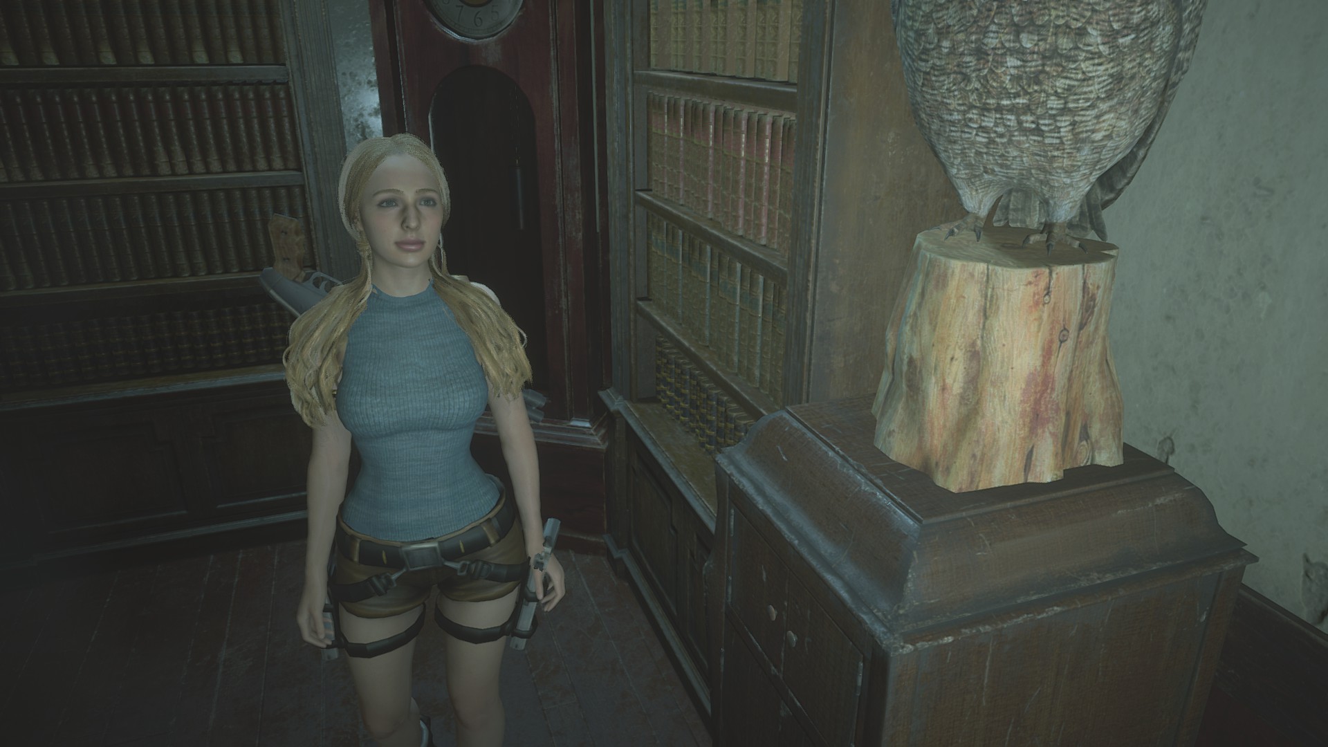 1) Main document: Use Lara Croft's costume to replace Katherine's "Ghost Survivors" costume.