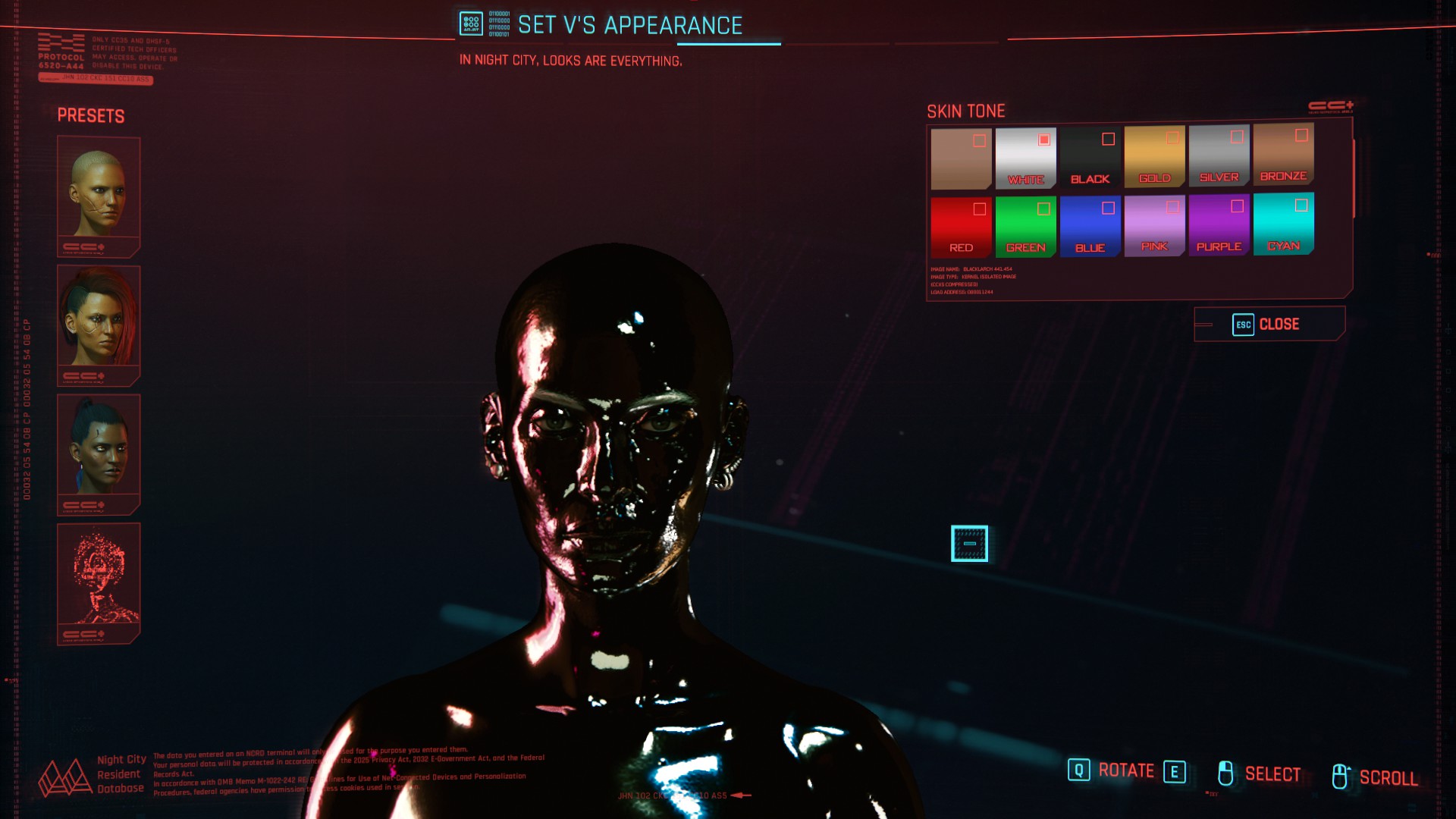 Change the character's skin to a chrome effect, and there are colors for men and women to choose from