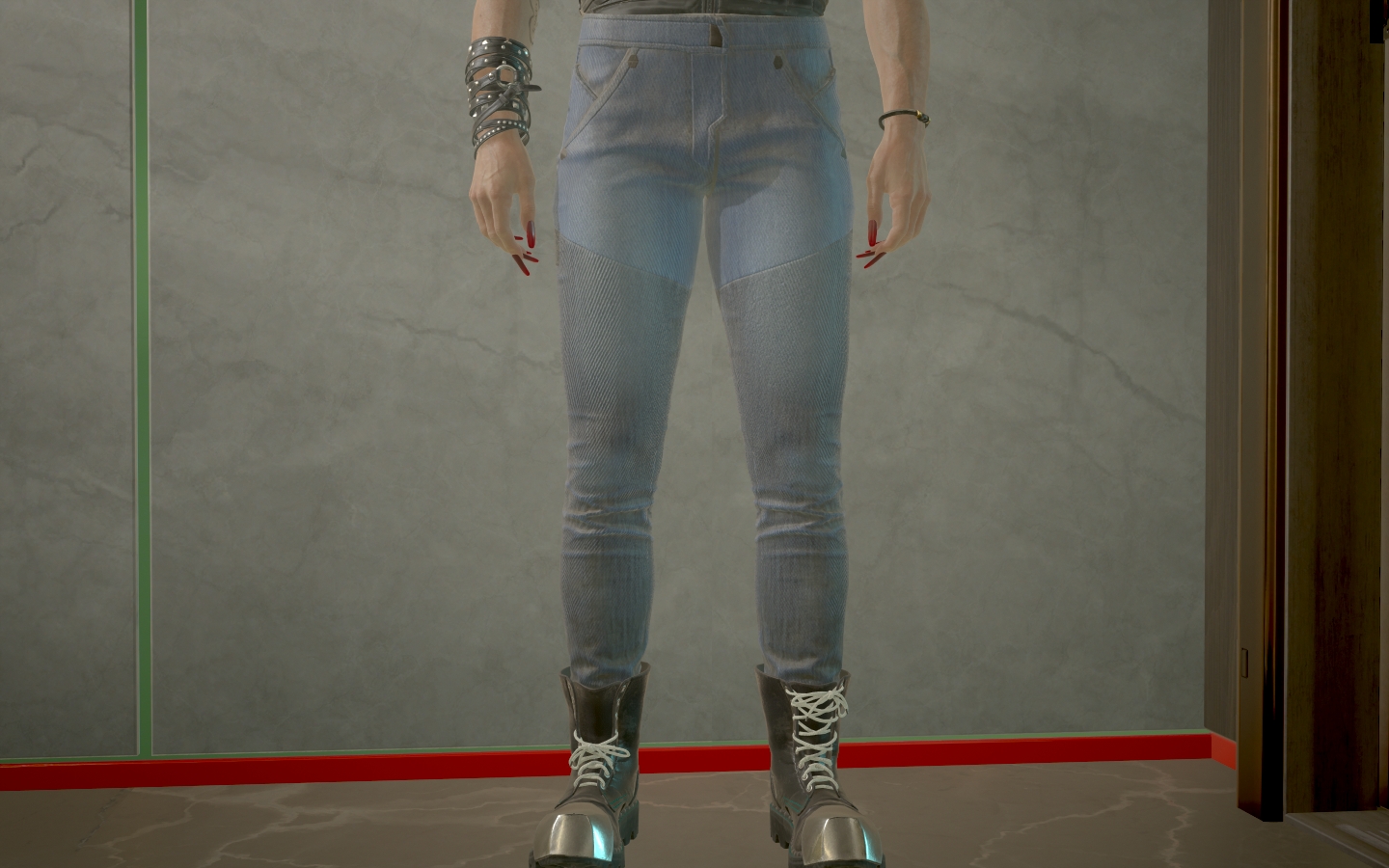Introduction:More colors for men's V skinny jeansCET command: Game.AddToInventory("Items.Pants_01_basic_02", 1)Author: PorgInstall:The path of the mod folder is... \ Cyberpunk 2077 \ archive \ pc \ mod If it does not exist, create a mod folder.You can buy it from a clothing store, or you can use CET (Cyber Engine Tweaks)