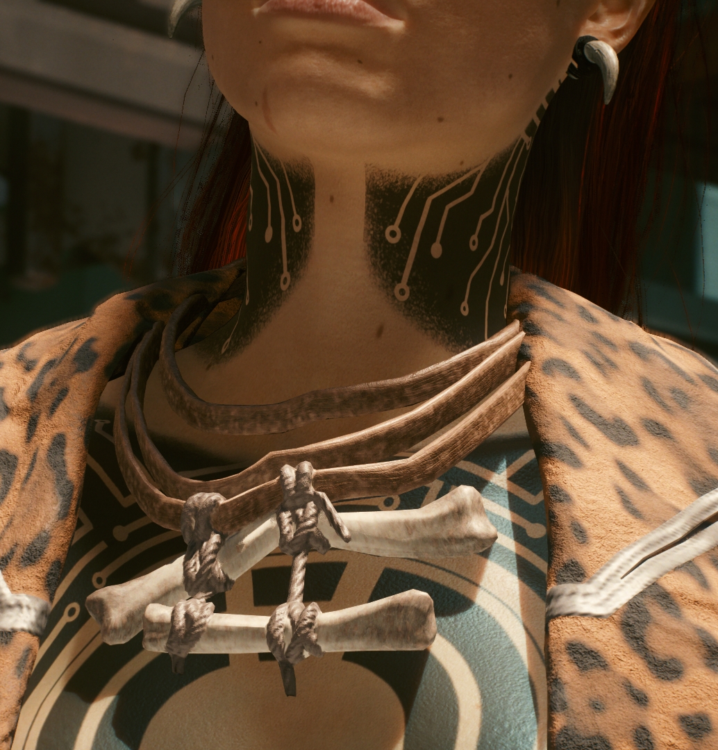 Introduction:3 different bone necklaces and 1 earring suitable for fem V. Replace aviator glassesAuthor: KnightdragonInstall:The path of the mod folder is... \ Cyberpunk 2077 \ archive \ pc \ mod If it does not exist, create a mod folder. Code: Game.AddToInventory("Items.Glasses_01_basic_02",1)