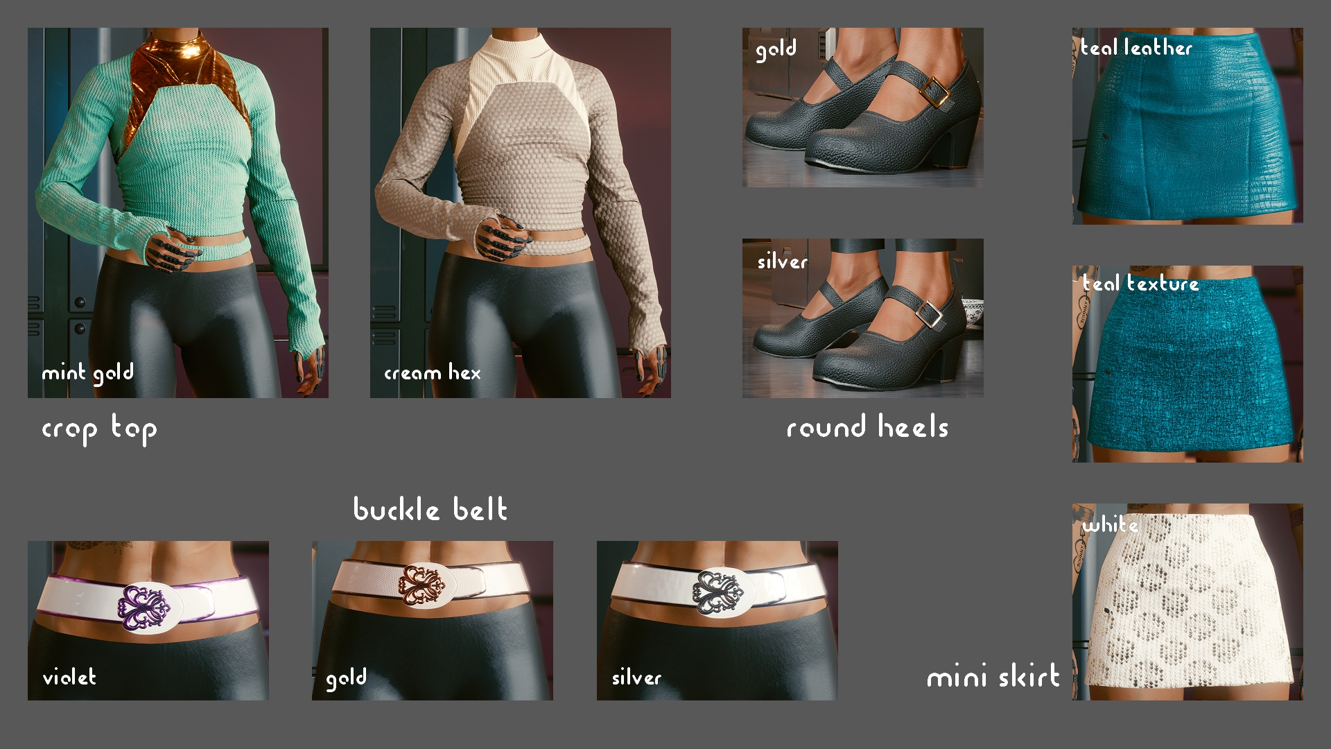 Introduction:The armor appearance of the new armor style is replaced with femV. Including long-sleeved bodysuits, kimono suit jackets, pinz nez glasses and more!Code:Game.AddToInventory("Items.Shirt_02_basic_01", 1)Game.AddToInventory("Items.Shirt_01_basic_01", 1)Game.AddToInventory("Items.TShirt_04_old_01", 1)Game.AddToInventory("Items.Vest_18_basic_01", 1)Game.AddToInventory("Items.Visor_02_basic_01", 1)Game.AddToInventory("Items.FormalSkirt_01_basic_02", 1)Game.AddToInventory("Items.Jacket_09_old_02", 1)Game.AddToInventory("Items.Vest_12_basic_01", 1)Game.AddToInventory("Items.Glasses_03_basic_05", 1)Game.AddToInventory("Items.CasualShoes_02_basic_02", 1)Author: MahatInstall:The path of the mod folder is... \ Cyberpunk 2077 \ archive \ pc \ mod If it does not exist, create a mod folder. Need Cyber Engine Tweaks