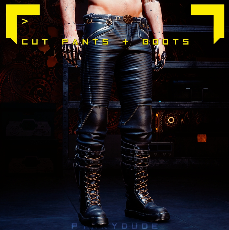 Introduction:Kerry's pants and boots are edited for male VCode:Game.AddToInventory("Items.Boots_10_basic_01", 1)Game.AddToInventory("Items.Pants_15_basic_01", 1)Game.AddToInventory("Items.Pants_14_basic_01", 1)Game.AddToInventory("Items.Boots_09_basic_01", 1)Author: PinkyDudeInstall:The path of the mod folder is... \ Cyberpunk 2077 \ archive \ pc \ mod If it does not exist, create a mod folder.Steam:\SteamLibrary\steamapps\common\Cyberpunk 2077\archive\pc\modGOG:\GOGLibrary\Games\Cyberpunk 2077\archive\pc\modEpic:\EpicLibrary\Cyberpunk 2077\archive\pc\mod