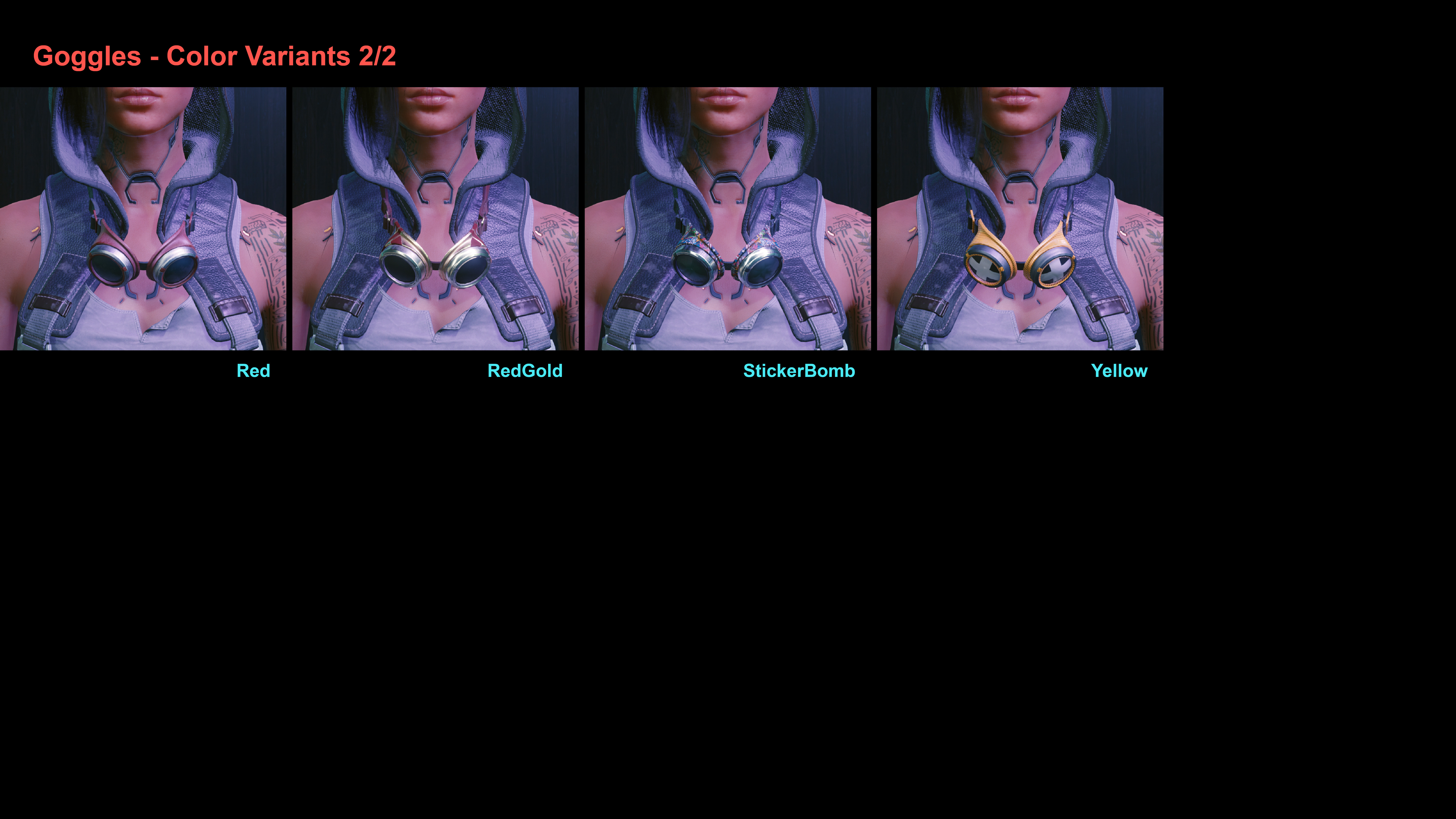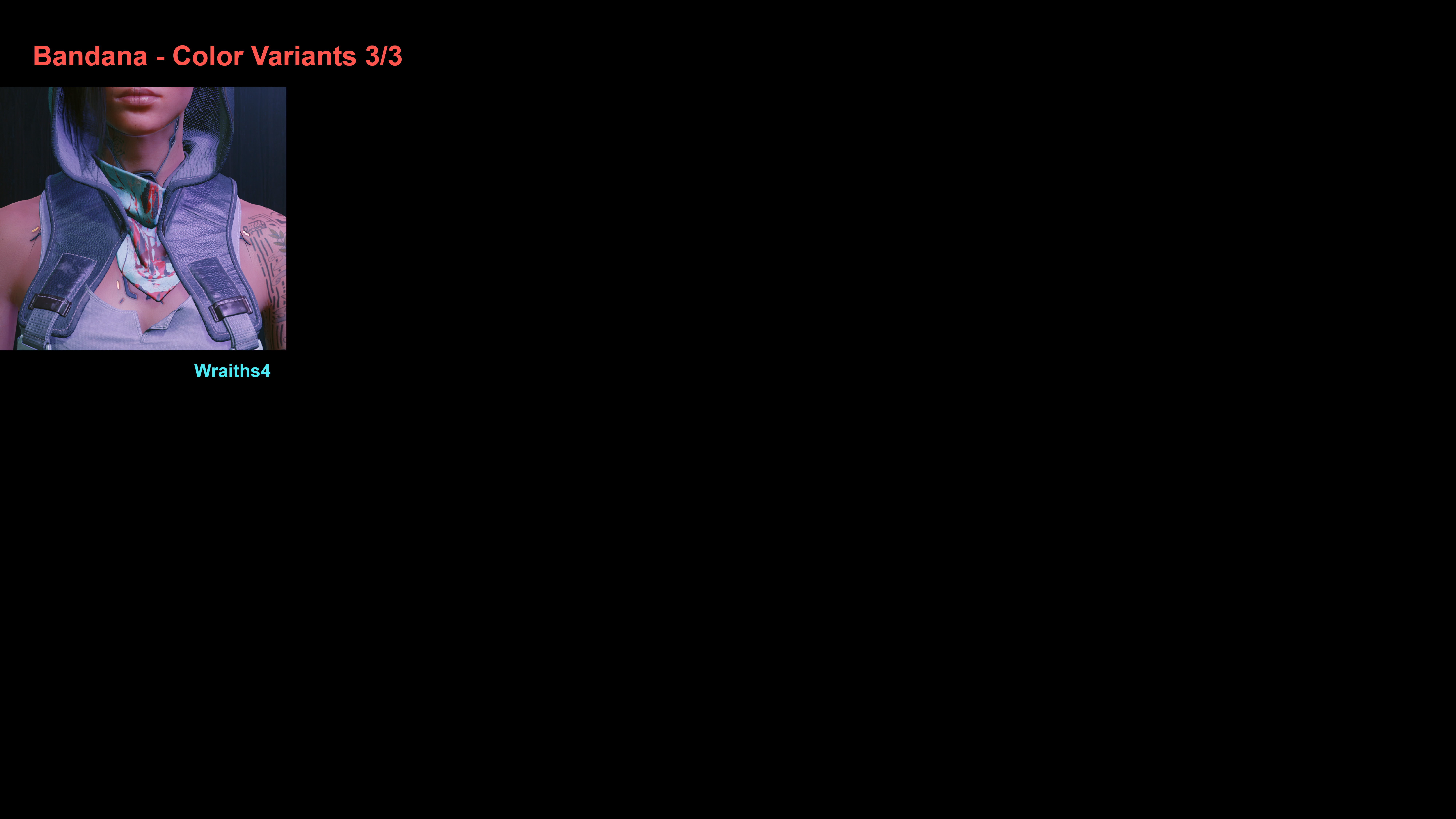 Introduction: Replaced the hooded look of the female V with one of 4 different hairstyles Code: Game.AddToInventory("Items.Scarf_02_basic_01",1)You can make a legendary version when you reach technical ability level 18, or use Edgerunner Bazaar.Author: EchorraInstall:The path of the mod folder is... \ Cyberpunk 2077 \ archive \ pc \ mod If it does not exist, create a mod folder.Steam:\SteamLibrary\steamapps\common\Cyberpunk 2077\archive\pc\modGOG:\GOGLibrary\Games\Cyberpunk 2077\archive\pc\modEpic:\EpicLibrary\Cyberpunk 2077\archive\pc\mod