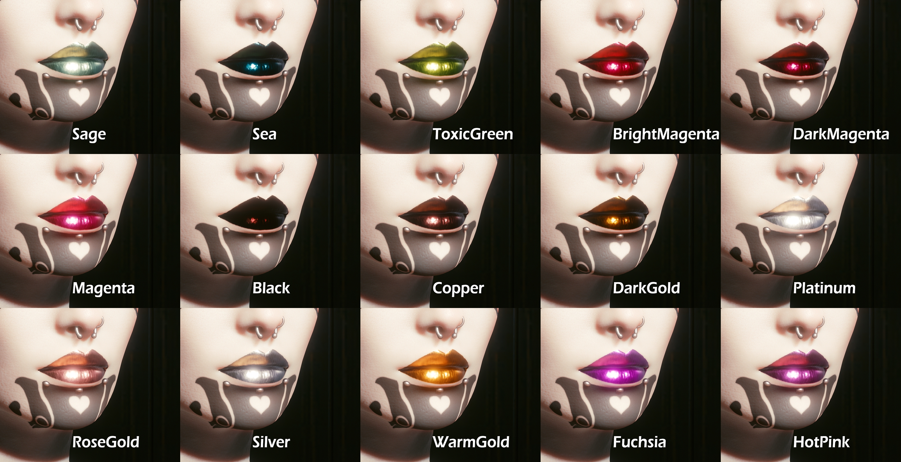 Introduction:Replace the gold option in the character creator with the new metallic +40 optionAuthor: AnruiMurasakiInstall:The path of the mod folder is... \ Cyberpunk 2077 \ archive \ pc \ mod If it does not exist, create a mod folder.Steam:\SteamLibrary\steamapps\common\Cyberpunk 2077\archive\pc\modGOG:\GOGLibrary\Games\Cyberpunk 2077\archive\pc\modEpic:\EpicLibrary\Cyberpunk 2077\archive\pc\mod
