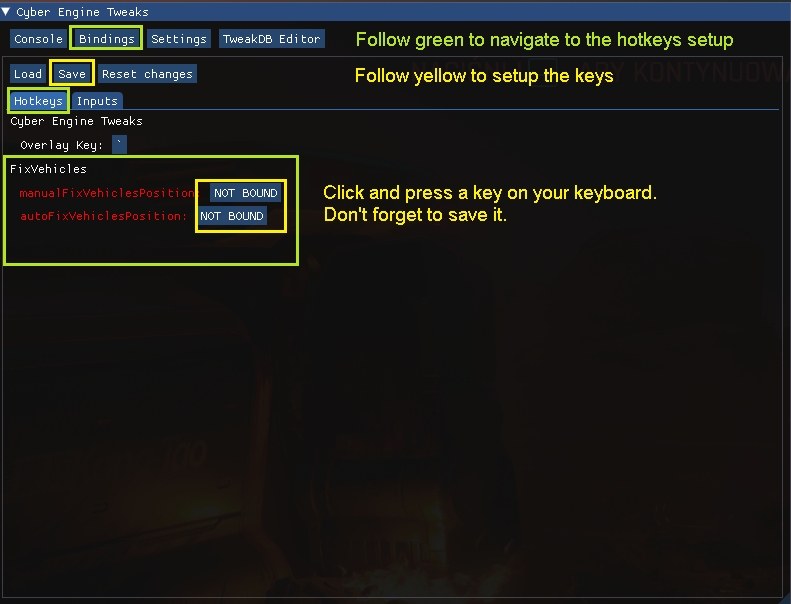 Introduction:Hovering vehicles repair-bring them back to the ground.Author: anygoodnameInstall:The path of the mod folder is... \ Cyberpunk 2077 \ archive \ pc \ mod If it does not exist, create a mod folder.Steam:\SteamLibrary\steamapps\common\Cyberpunk 2077\archive\pc\modGOG:\GOGLibrary\Games\Cyberpunk 2077\archive\pc\modEpic:\EpicLibrary\Cyberpunk 2077\archive\pc\modNeed Cyber Engine Tweaks