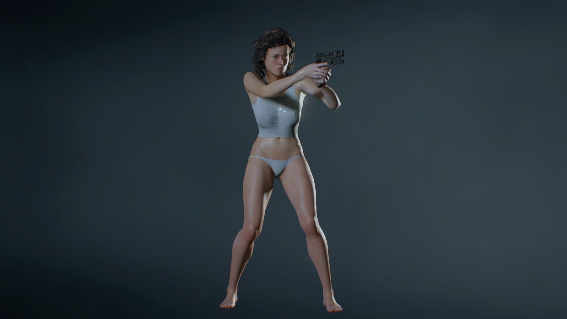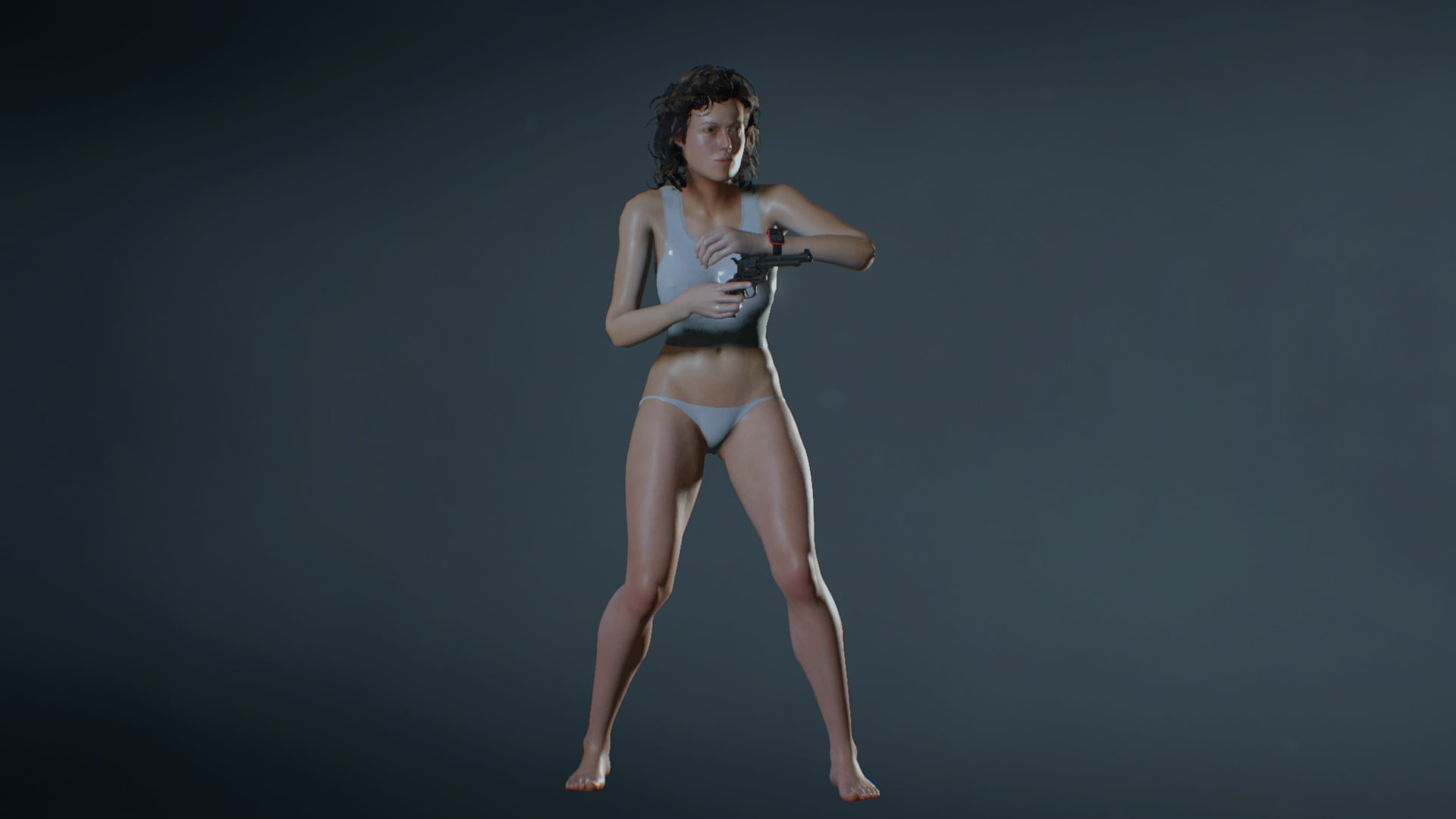 The classic costume worn by the heroine of the 1979 movie "Alien" when she is about to return to Earth in the final plot.