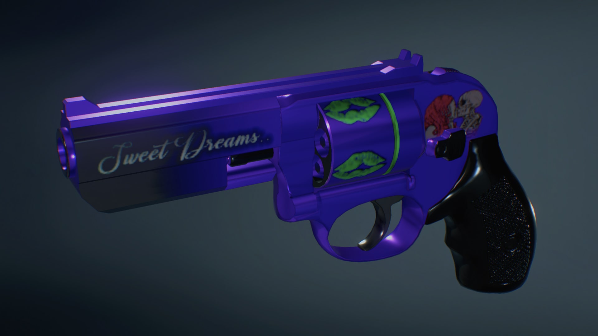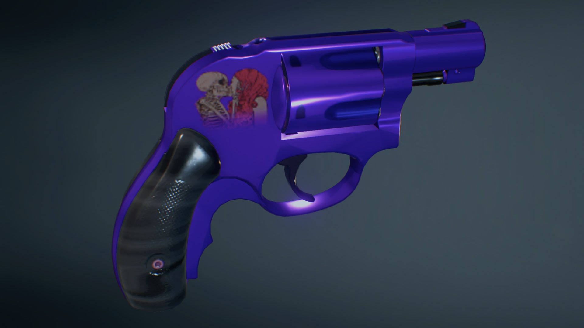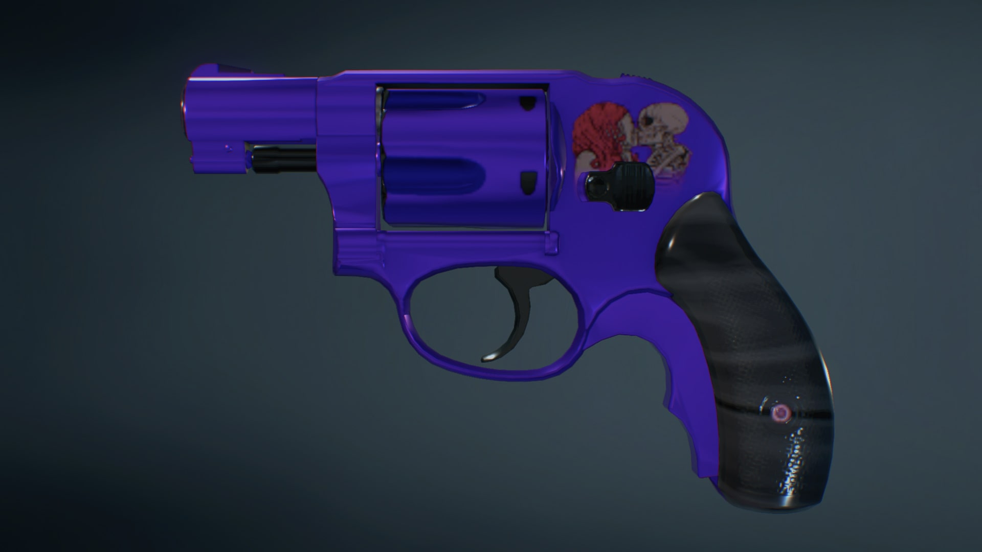 A. Polished metallic color, with skull/lady decals, independent color matching of bullet roller grooves, each with its own merits according to different color systems.