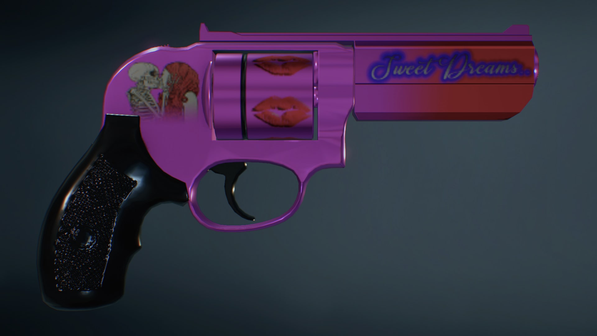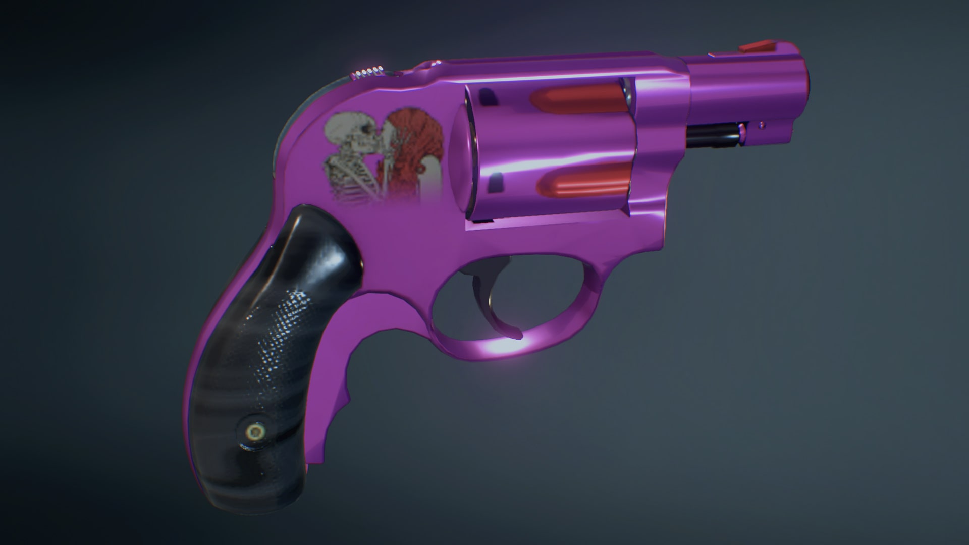 A. Polished metallic color, with skull/lady decals, independent color matching of bullet roller grooves, each with its own merits according to different color systems.