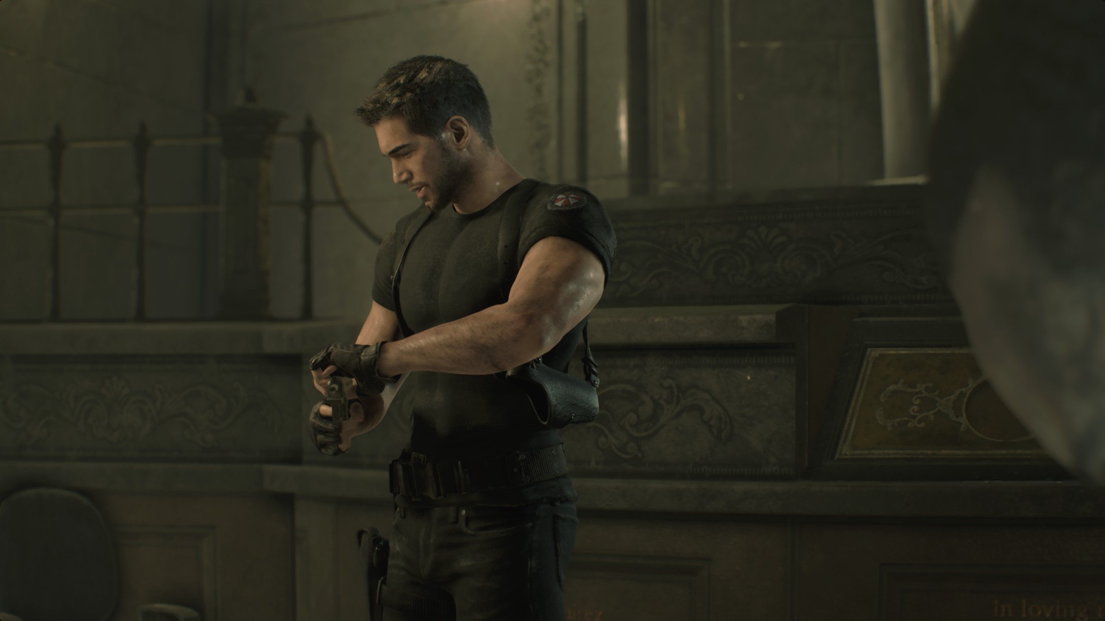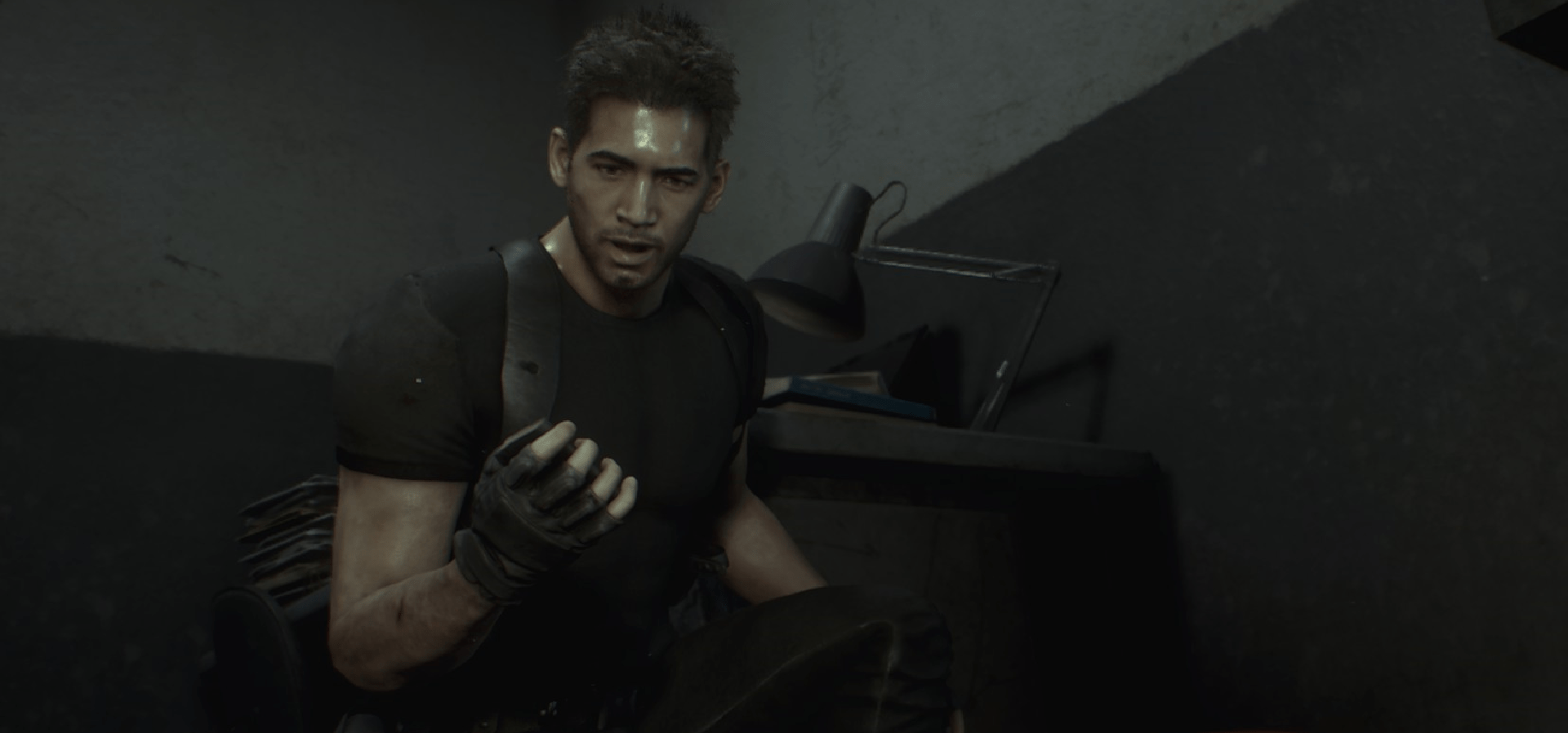 Carlos t-shirt and jeans (short hair), replacing Lyon's casual wear (casual).