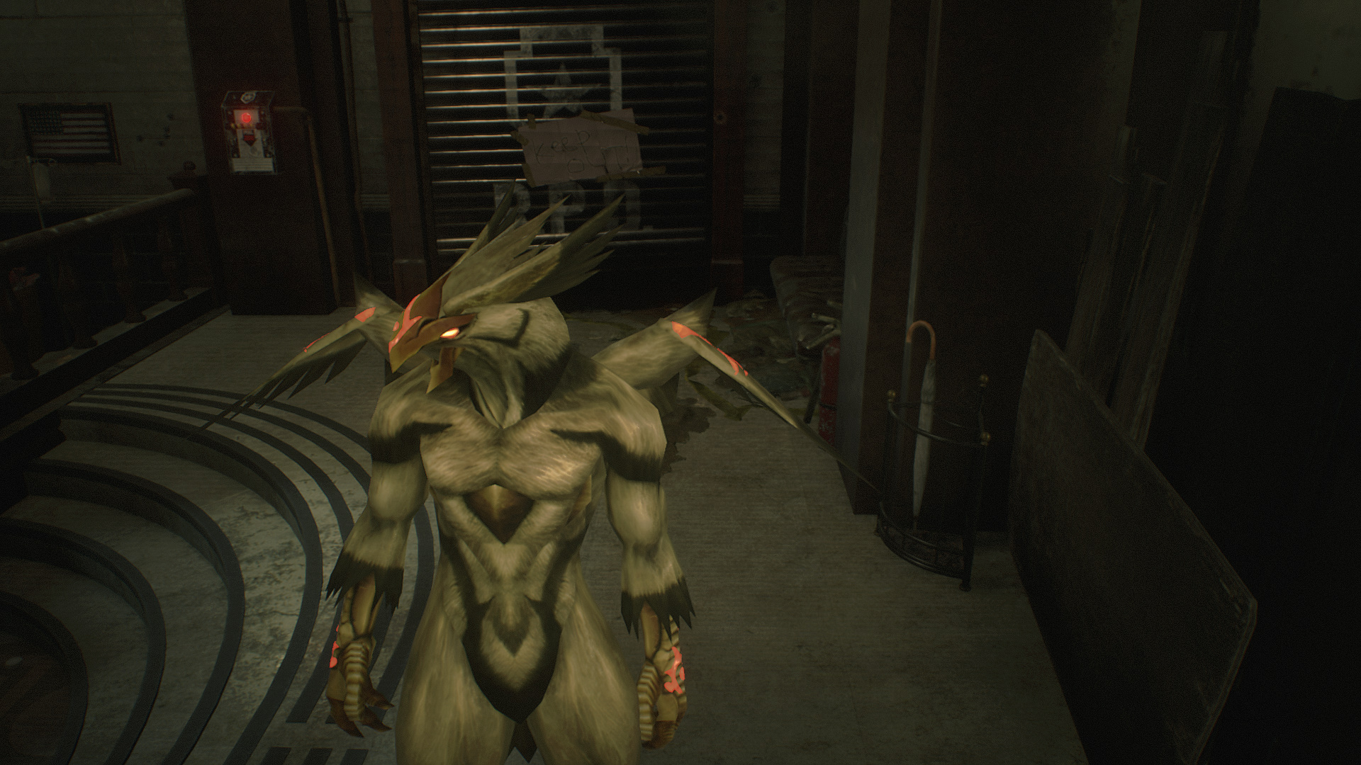 Replaced Leon with "Beastbound Fighting/Orc Fighting/Bloody Roar"The Phoenix form of Cronos in EX.Lyon Plain clothes/RPD => Phoenix form without wings.Lyon RPD Classic => Butterfly glowing phoenix form.Lyon Costume: 98 => Phoenix without wings.Phoenix will lose his lower wing when Leon's clothes are injured.
