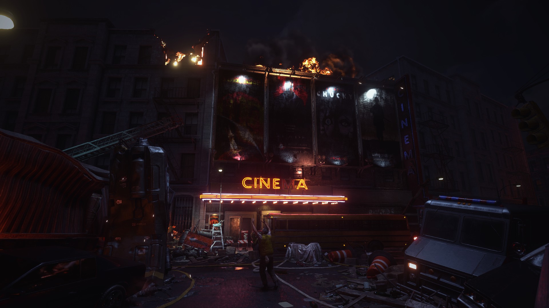 Change the movie theater's poster to be a REal movie ad for the 1998 movie. Movies include: Armageddon, Blade, Chuckie Bride and Saving Private Ryan.
