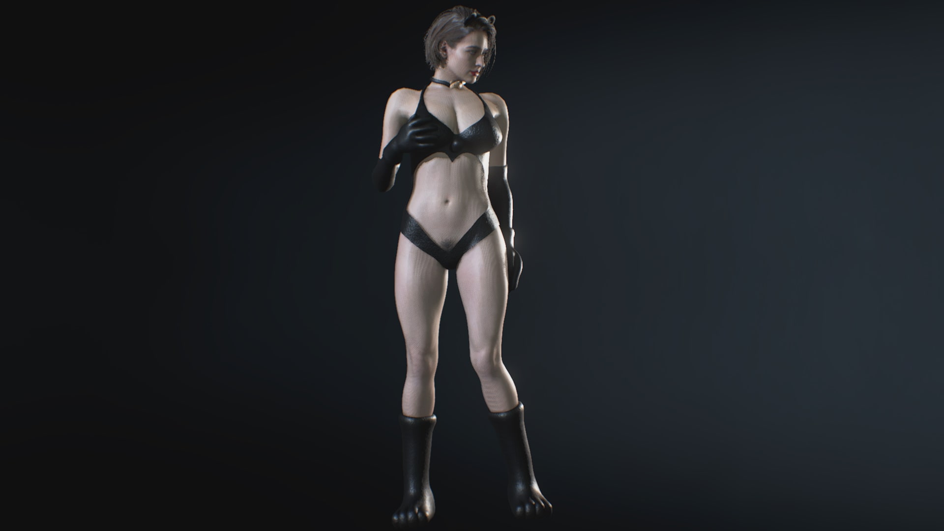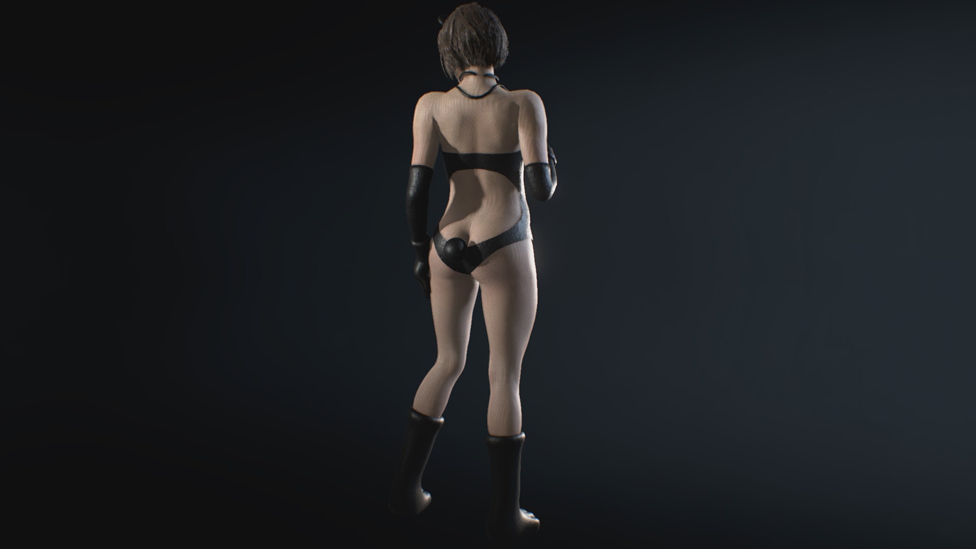 Jill, the black fluffy bear, replaces the default outfit.