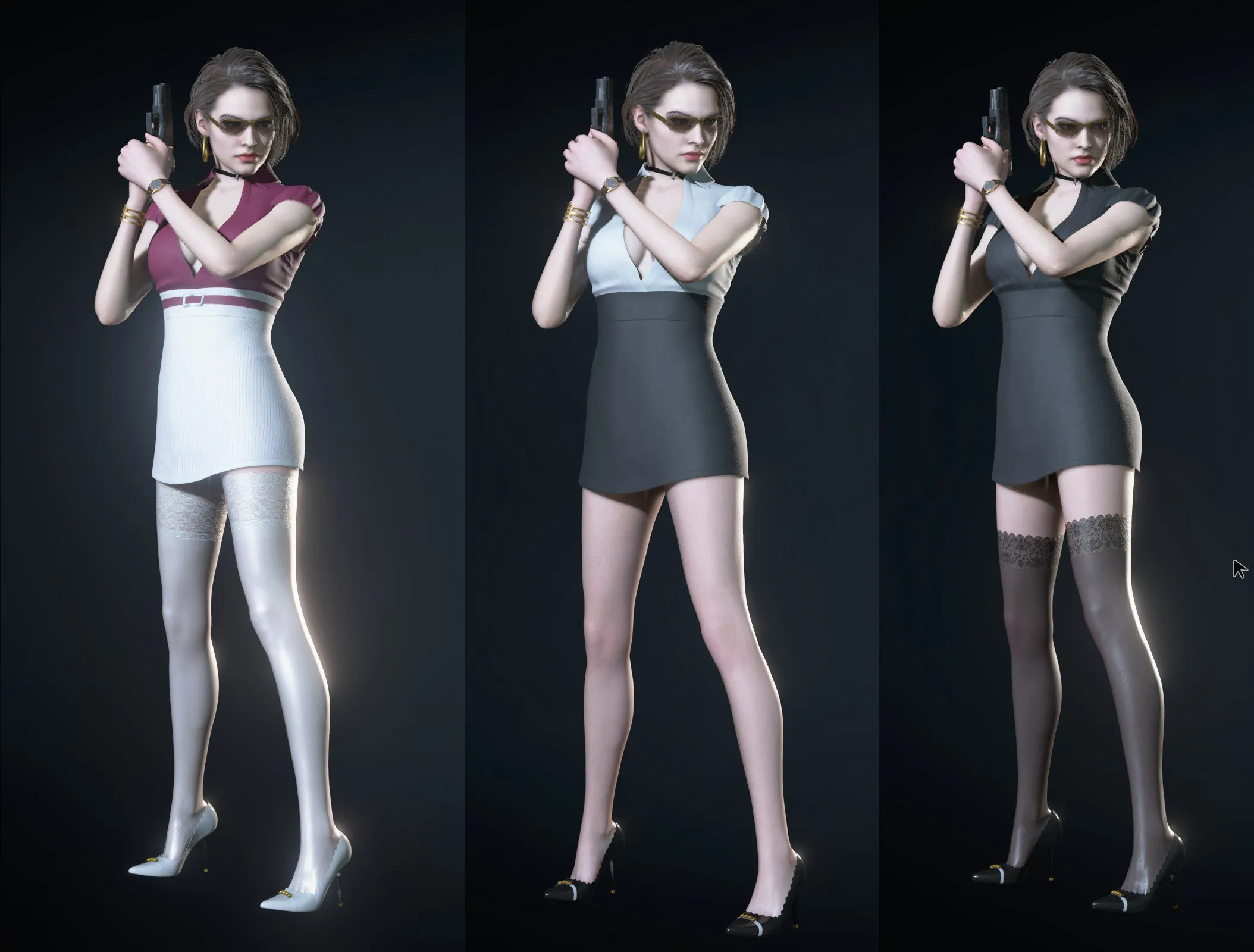 A total of three color styles, stockings + pantyhose patches can be freely matched to replace the default clothingThank you for your continued support Happy New Years in advance to everyone Please note that this mod requires the Resident Evil 3 DLC file to run Please make sure you have installed the DLC.