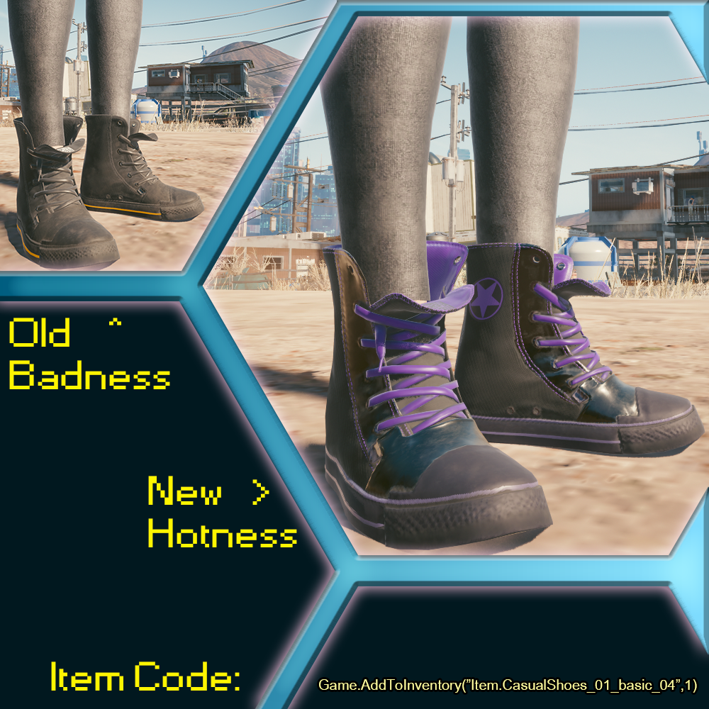 Introduction:Recolored and redesigned high-tops.Author: DerixylethInstall:The path to the mod folder is...\Cyberpunk 2077\archive\pc\mod Create the mod folder if it doesn't exist.Steam:\SteamLibrary\steamapps\common\Cyberpunk 2077\archive\pc\modGOG:\GOGLibrary\Games\Cyberpunk 2077\archive\pc\modEpic:\EpicLibrary\Cyberpunk 2077\archive\pc\mod