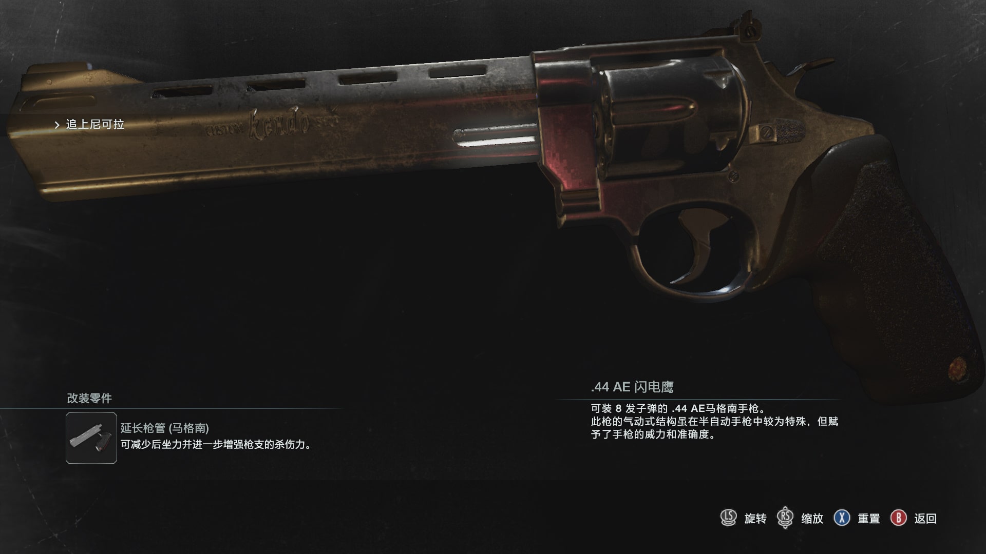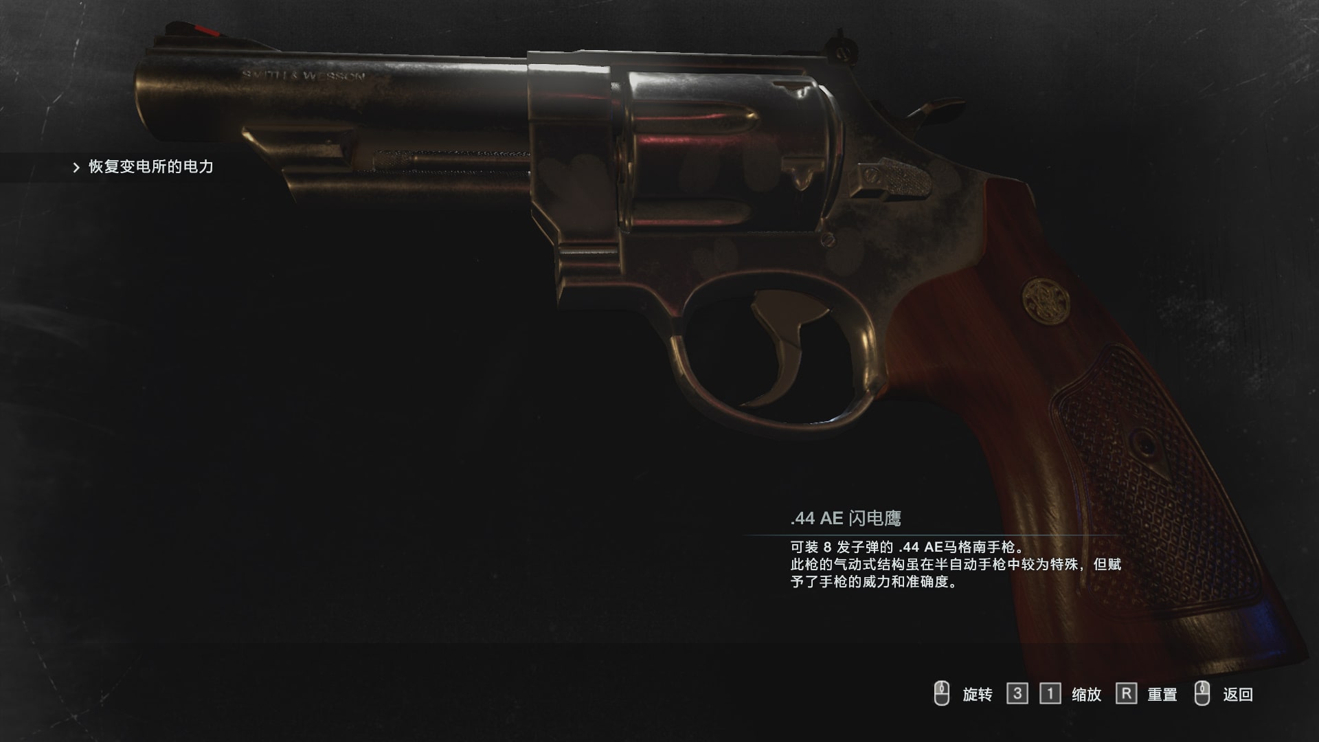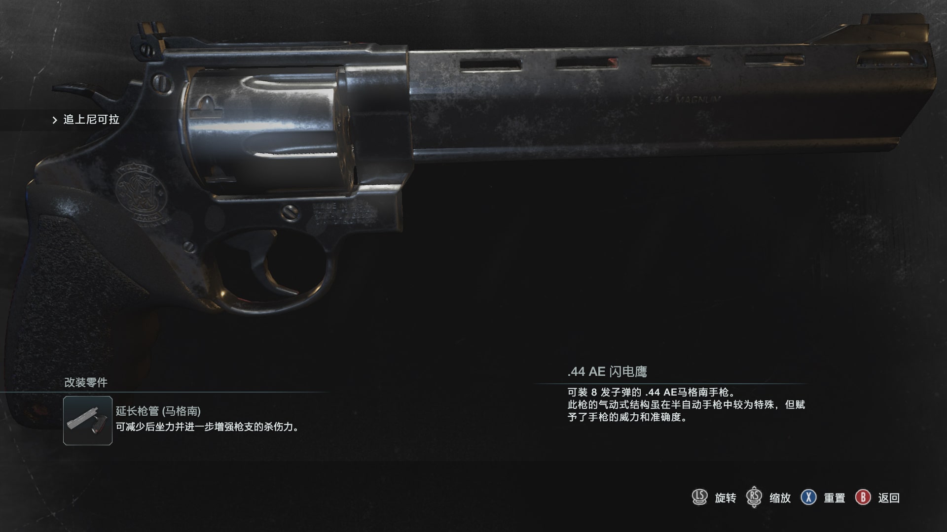 Magnum Revolver Replaces .44 AE Lightning Hawk ( .44Lightning Hawk ), an 8-round .44 AE Magnum pistol.< Resident Evil 3 (1999) Jingwu