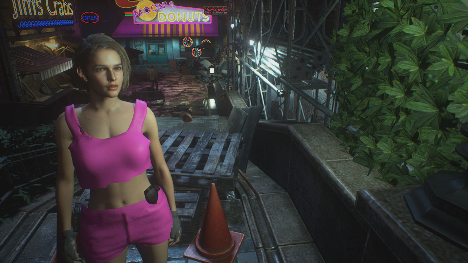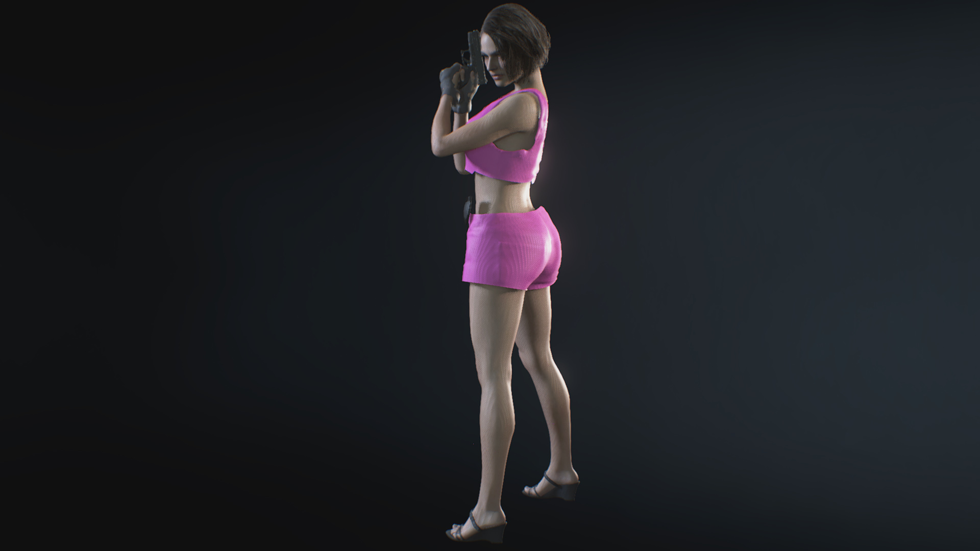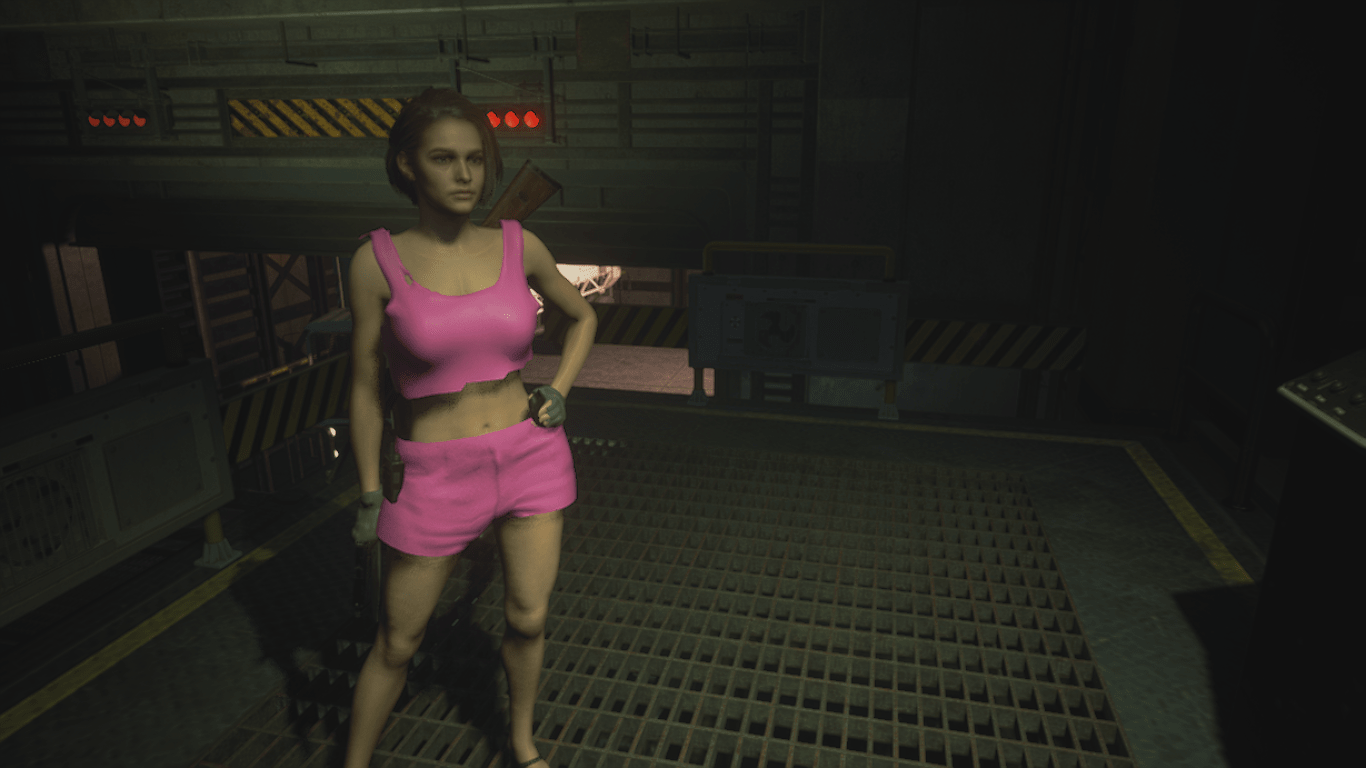 Half shirt and shorts (pink) version, replaces the default Jill outfit.