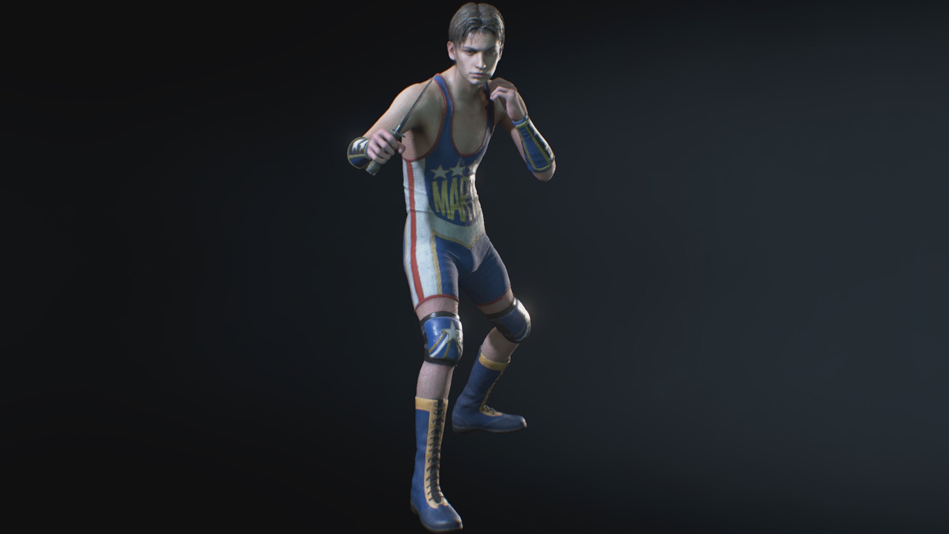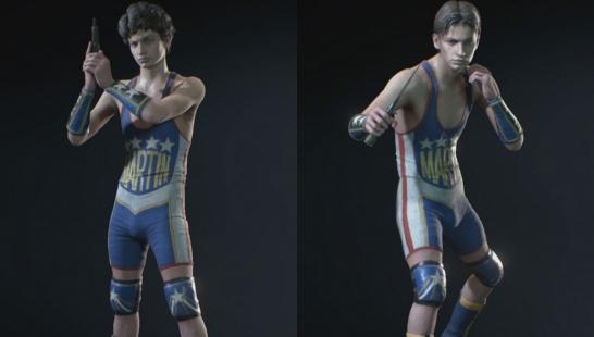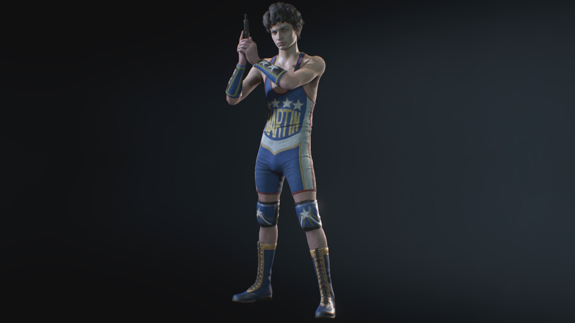 Martin Sandwich as Carlos (wrestler outfit),