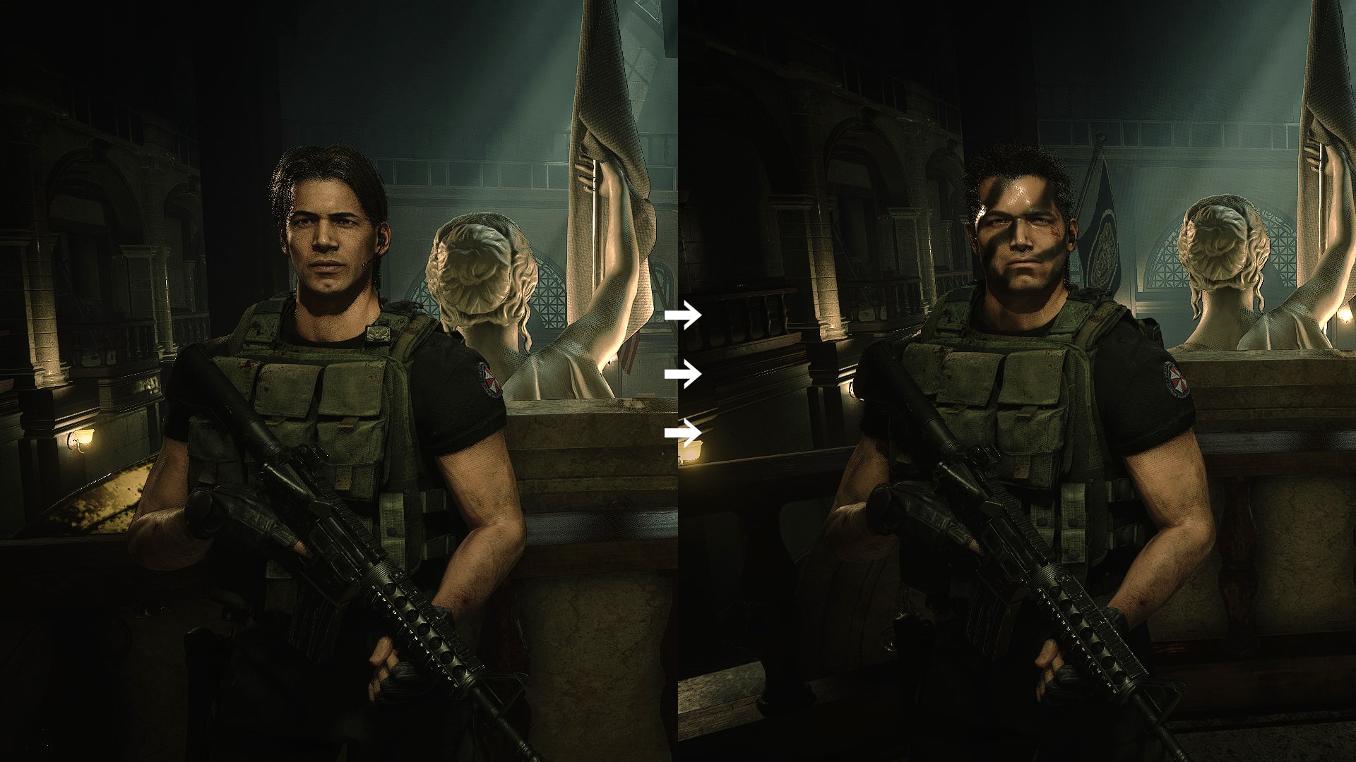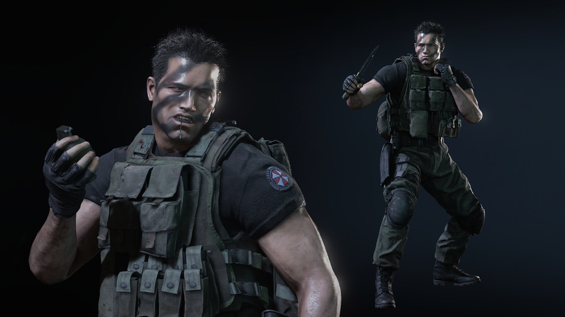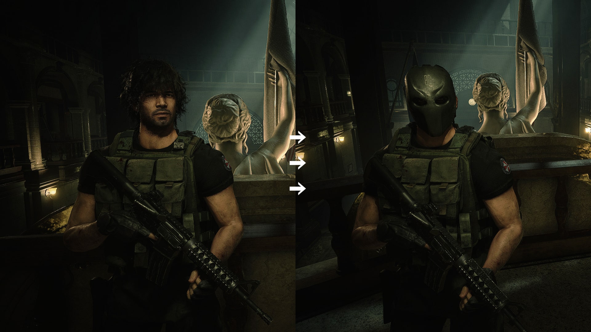 Replaces Ballistic Mask for Carlos & Arnoldface. from the UBCS team also has a new mask .Note: Added a ballistic mask to the Carlos skin, remove the flashlight. In the classic skin, the body model is also slightlyChanged, but both makeup and skin were replaced. Blinded Carlos' face from the original, giving Arnold's facial features.