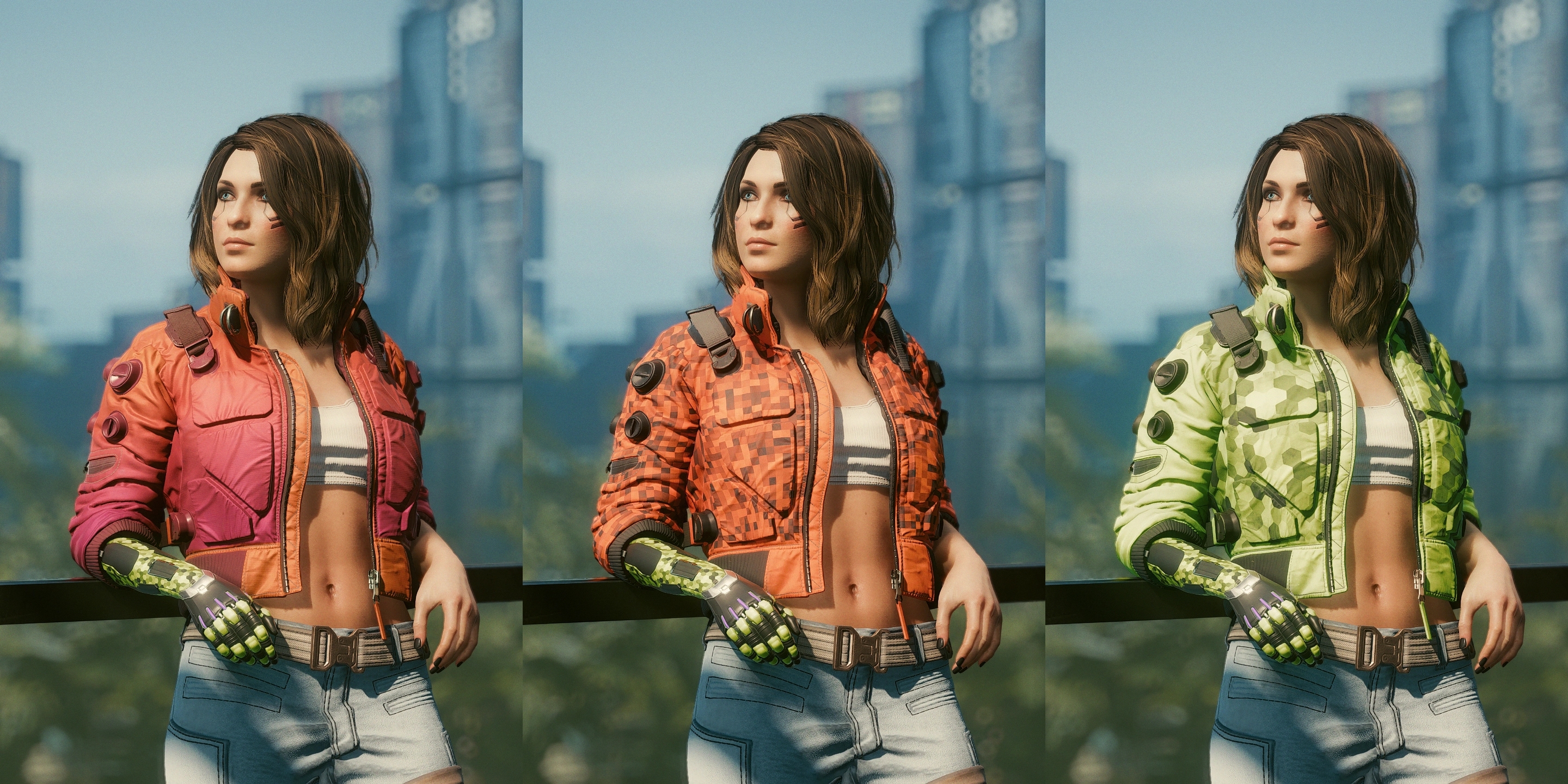Introduction:Modified Jackie's jacket for Fem V. Recolor.Item code:Game.AddToInventory("Items.Vest_01_basic_01", 1)Game.AddToInventory("Items.Vest_01_basic_02", 1)Game.AddToInventory("Items.Vest_01_old_01", 1)Game.AddToInventory("Items.Vest_01_old_02", 1)Game.AddToInventory("Items.Vest_01_rich_01", 1)Game.AddToInventory("Items.Vest_01_rich_02", 1)Author: Prince of LlamasInstall:The path to the mod folder is...\Cyberpunk 2077\archive\pc\mod Create the mod folder if it doesn't exist.Steam:\SteamLibrary\steamapps\common\Cyberpunk 2077\archive\pc\modGOG:\GOGLibrary\Games\Cyberpunk 2077\archive\pc\modEpic:\EpicLibrary\Cyberpunk 2077\archive\pc\modMOD required:Cookedapps Nulledhttps://www.nexusmods.com/cyberpunk2077/mods/3051Cyberpunk 2077 Texture Overridehttps://www.nexusmods.com/cyberpunk2077/mods/1572