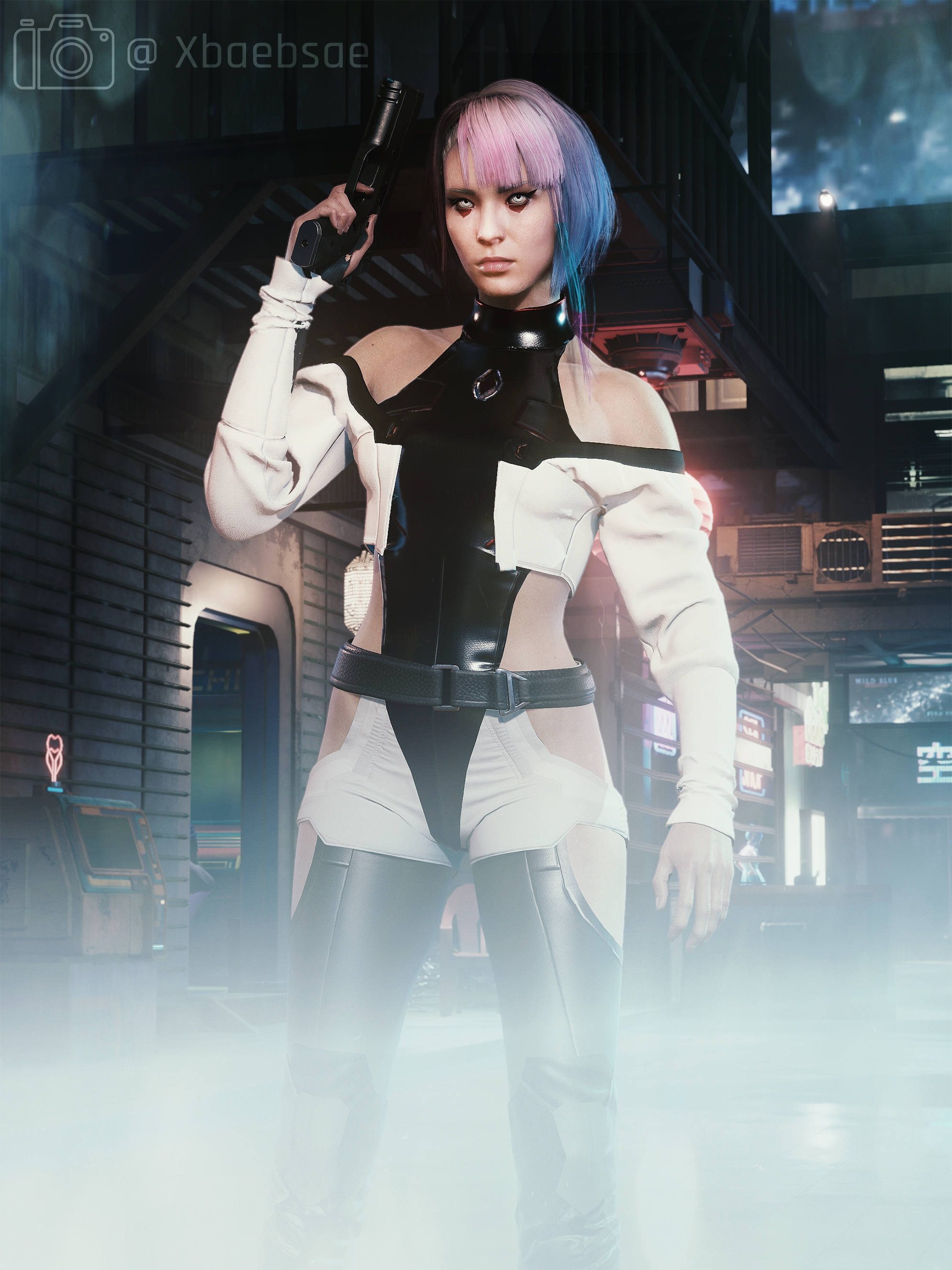Introduction:Lucy's outfit, inspired by the upcoming Cyberpunk Edgerunners anime, for Fem V onlyCode:Tops, pants and bootsGame.AddToInventory("Items.Shirt_01_basic_01",1)Game.AddToInventory("Items.Pants_09_basic_01",1)Game.AddToInventory("Items.Boots_01_basic_01",1)hair:Game.AddToInventory("Items.hair_00_lucy",1)jacketGame.AddToInventory("Items.Vest_08_basic_01",1)Hair requires mods:ArchiveXLhttps://www.nexusmods.com/cyberpunk2077/mods/4198TweakXLhttps://www.nexusmods.com/cyberpunk2077/mods/4197Author: heladios - xbaebsae - smallsandayuInstall:The path to the mod folder is...\Cyberpunk 2077\archive\pc\mod Create the mod folder if it doesn't exist.Steam:\SteamLibrary\steamapps\common\Cyberpunk 2077\archive\pc\modGOG:\GOGLibrary\Games\Cyberpunk 2077\archive\pc\modEpic:\EpicLibrary\Cyberpunk 2077\archive\pc\mod