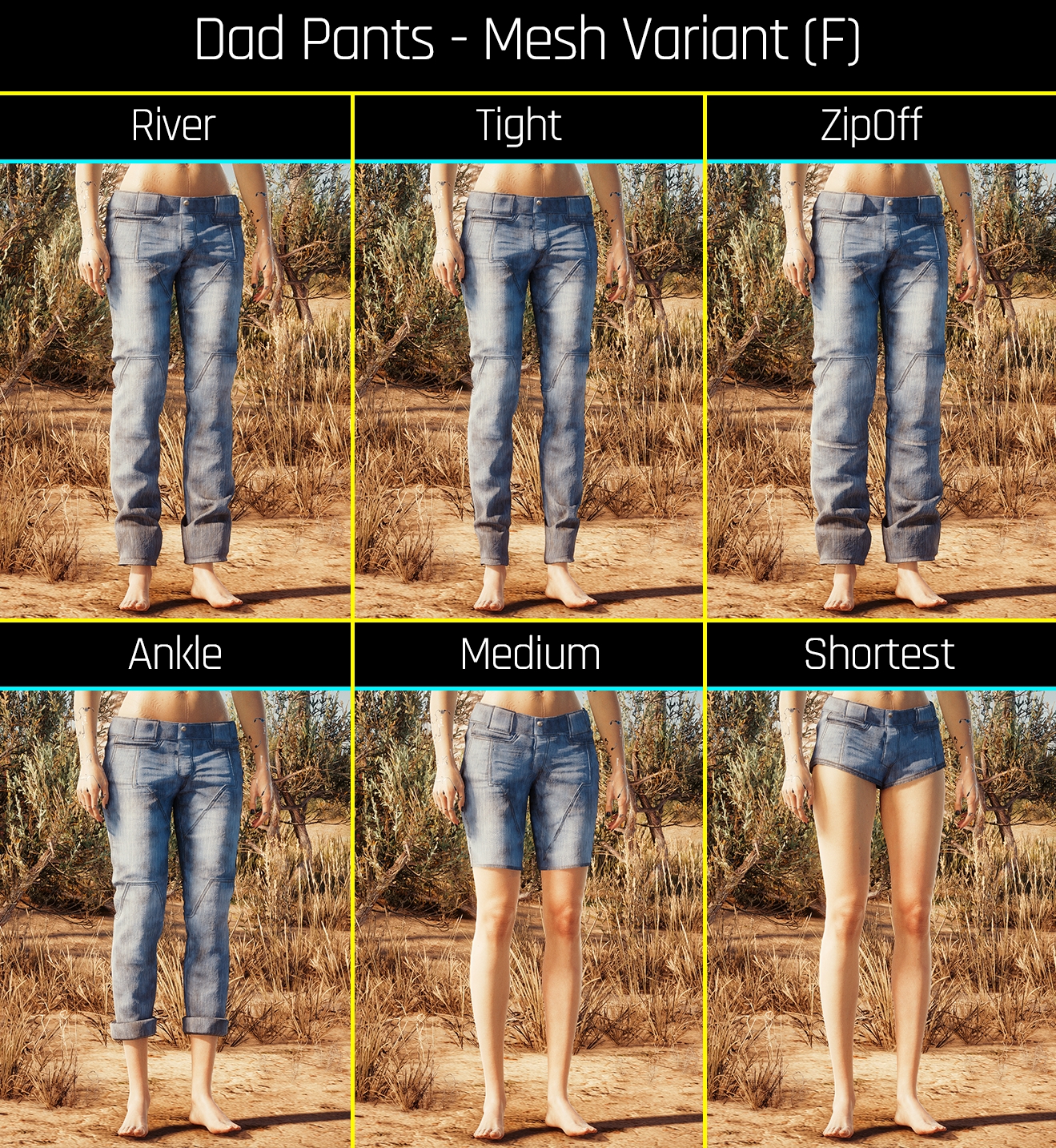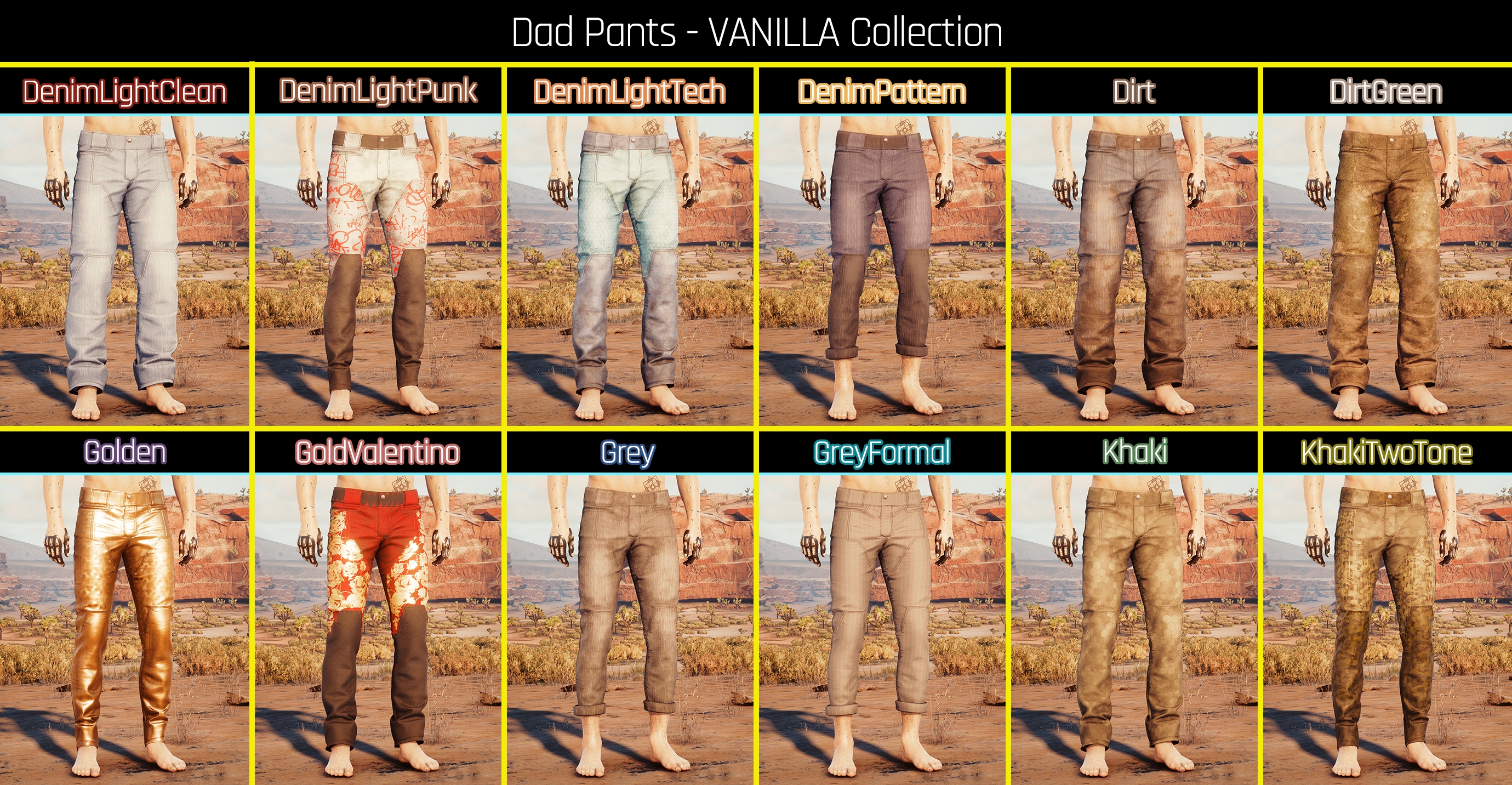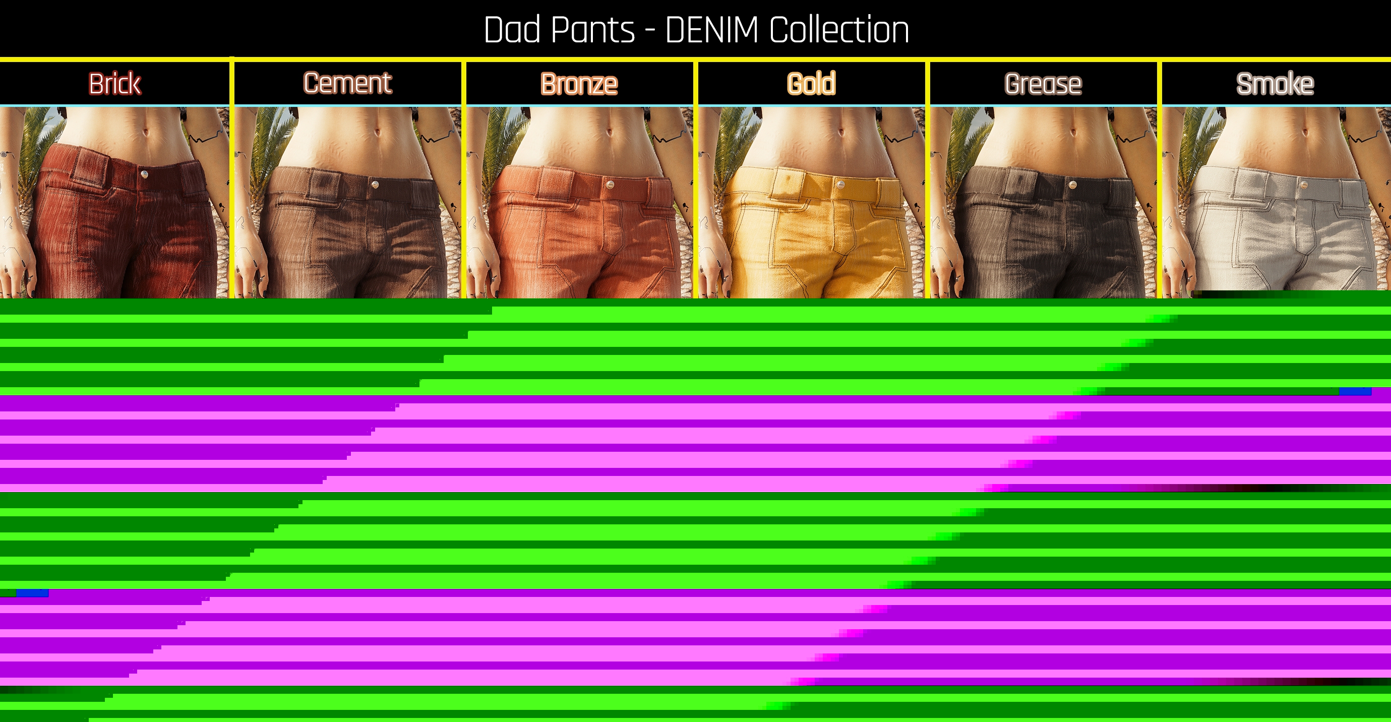 Introduction:Fem and Masc V's Funky Dad PantsAuthor: PinkyDudeInstall:The path to the mod folder is...\Cyberpunk 2077\archive\pc\mod Create the mod folder if it doesn't exist.Steam:\SteamLibrary\steamapps\common\Cyberpunk 2077\archive\pc\modGOG:\GOGLibrary\Games\Cyberpunk 2077\archive\pc\modEpic:\EpicLibrary\Cyberpunk 2077\archive\pc\mod
