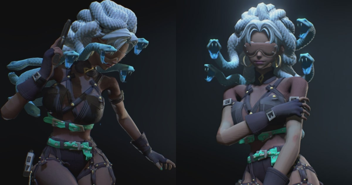 Blindfolded Medusa replaces Jill, replaces the default outfit.