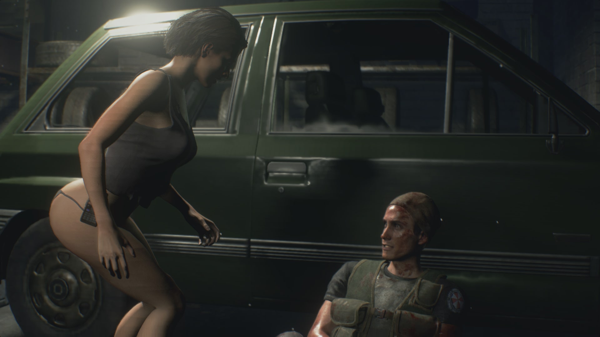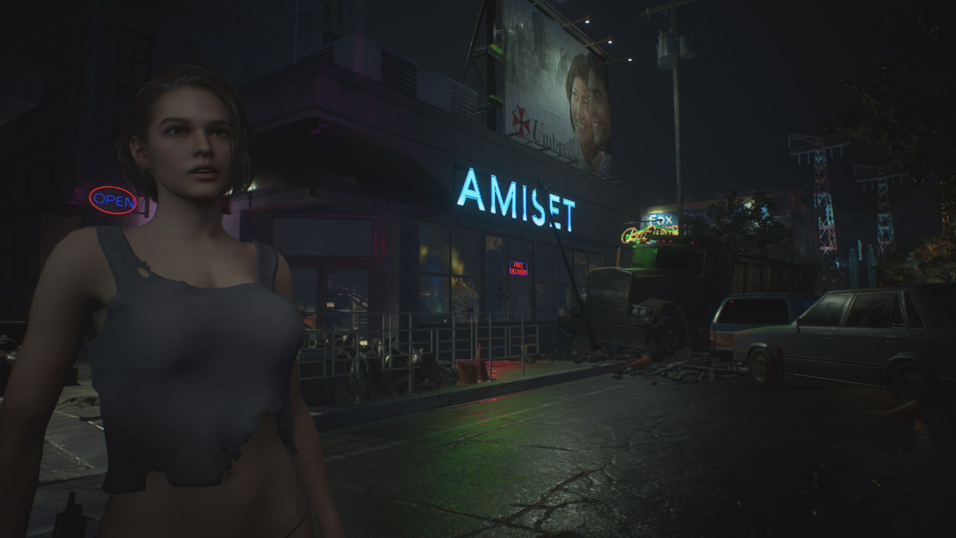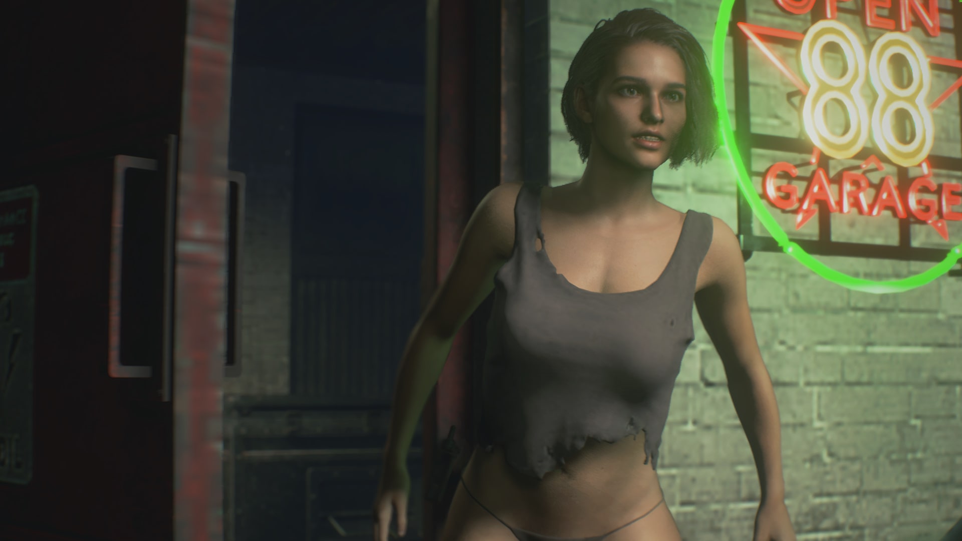 Jill Valentine in a sexy ripped shirt, dive deep into Raccoon City.