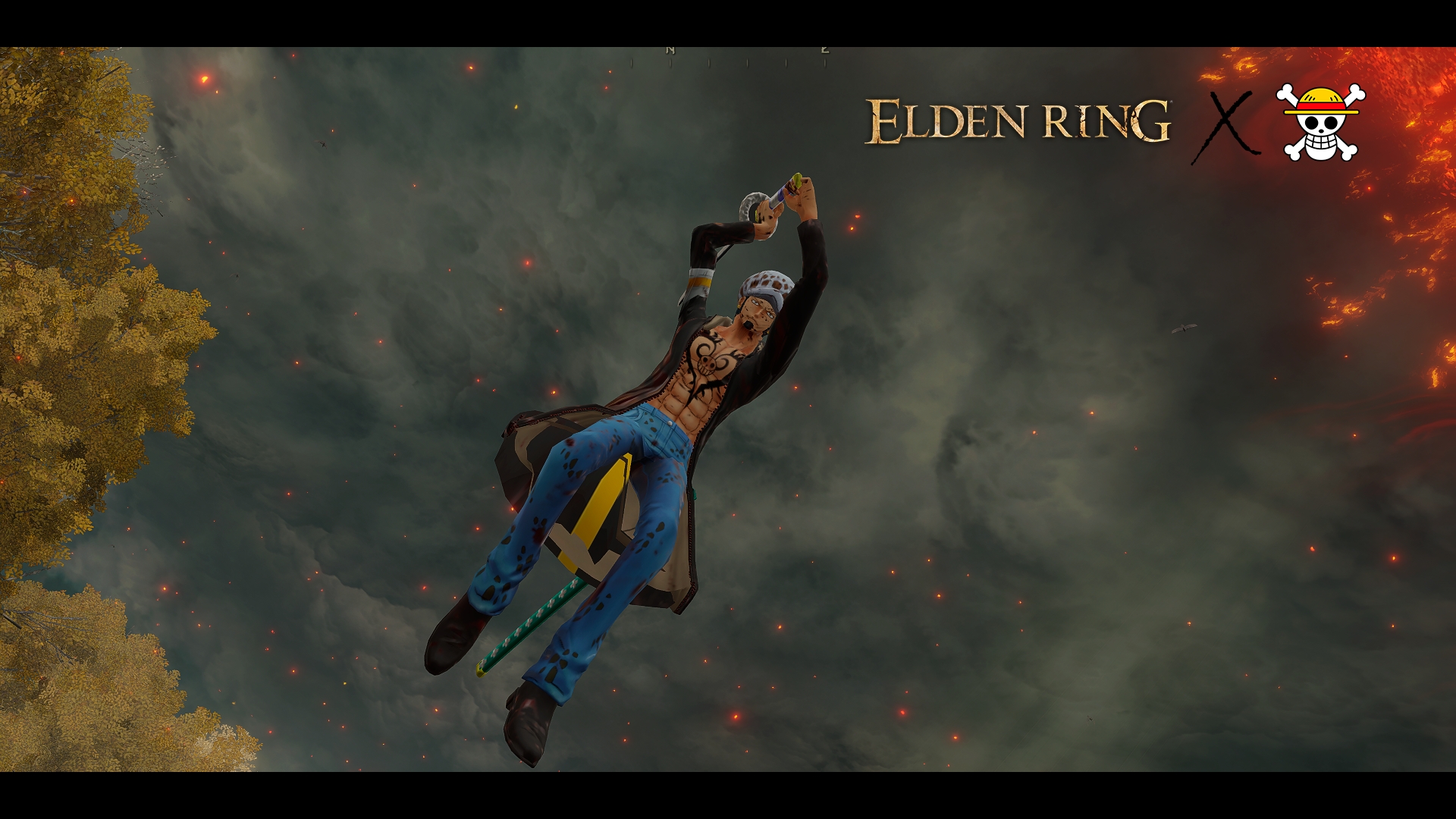 Introduction:Blaidd set and rivers of blood replaced by Trafalgar law and his weaponModels ripped from one piece burning bloodAuthor: MrMorritos3DInstall:1. Install UXM and use it to unzip the game.2. Click "Patch" after decompression is complete.3. Unzip the mod to the home folder (where your eldenring.exe is located).4. Disable EAC before launching the game.