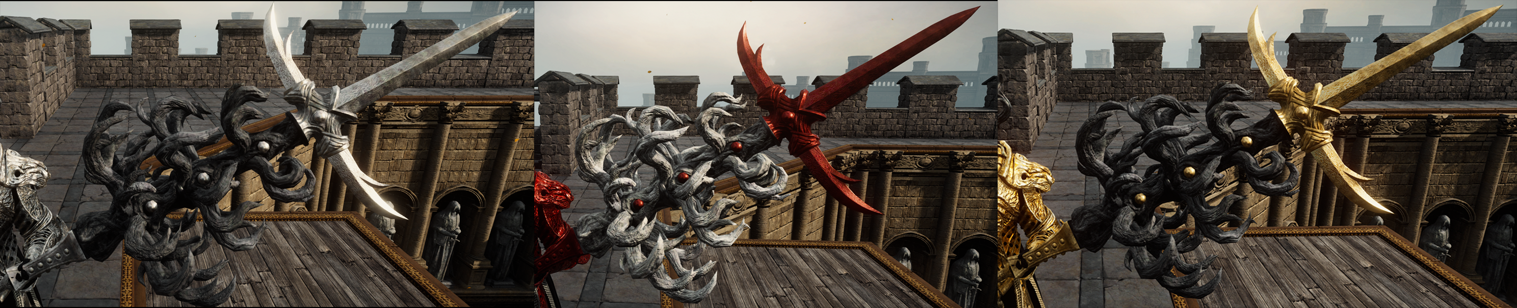 Introduction:4 recolors of the Crucible Hornshield, Ordovis's Greatsword, and Siluria's Tree: Silver, red, gold and black.Author: Honor KnightInstall:1. Install UXM and use it to unzip the game.2. Click "Patch" after decompression is complete.3. Unzip the mod to the "parts" folder4. Disable EAC before launching the game.