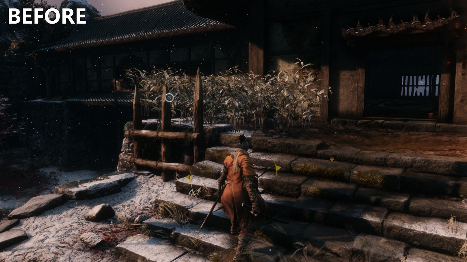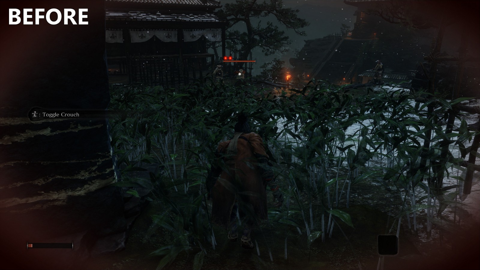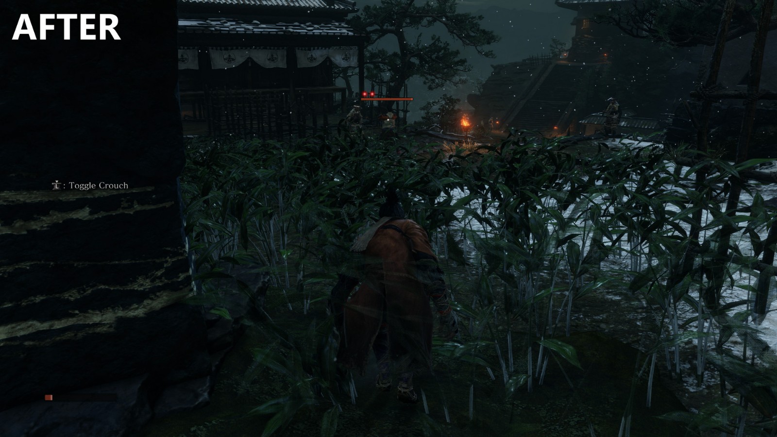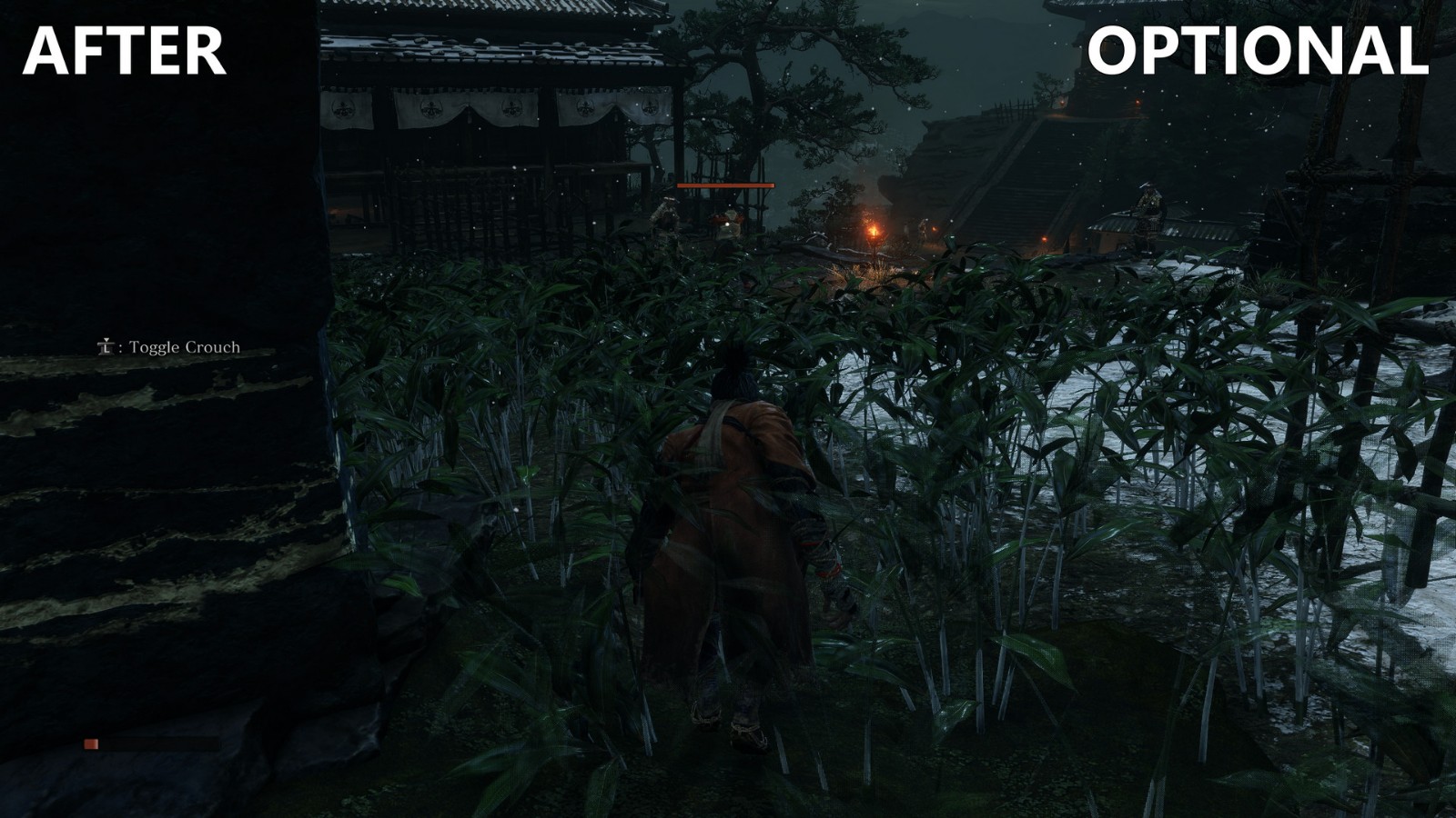 - C7: Removes overlay kanji, deathblow prompts, all posture meters, enemy health meters, and XP meter.