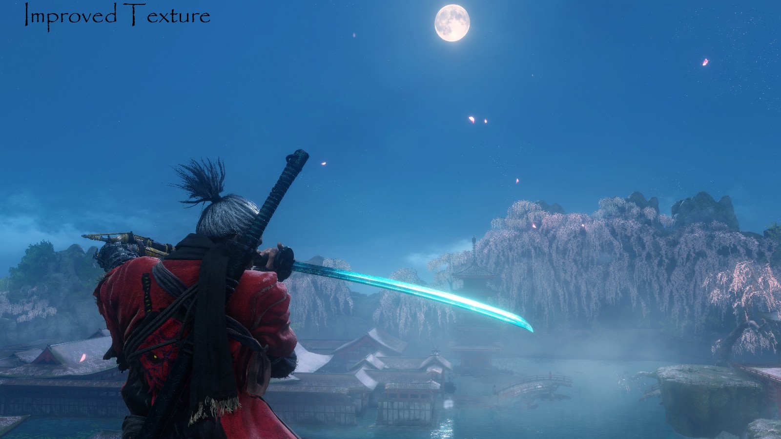 This is a reskin of Sekiro's katana, Kusabimaru. It is inspired by Bloodborne's version of the Moonlight Greatsword. Added a new version that glows without moonlight.