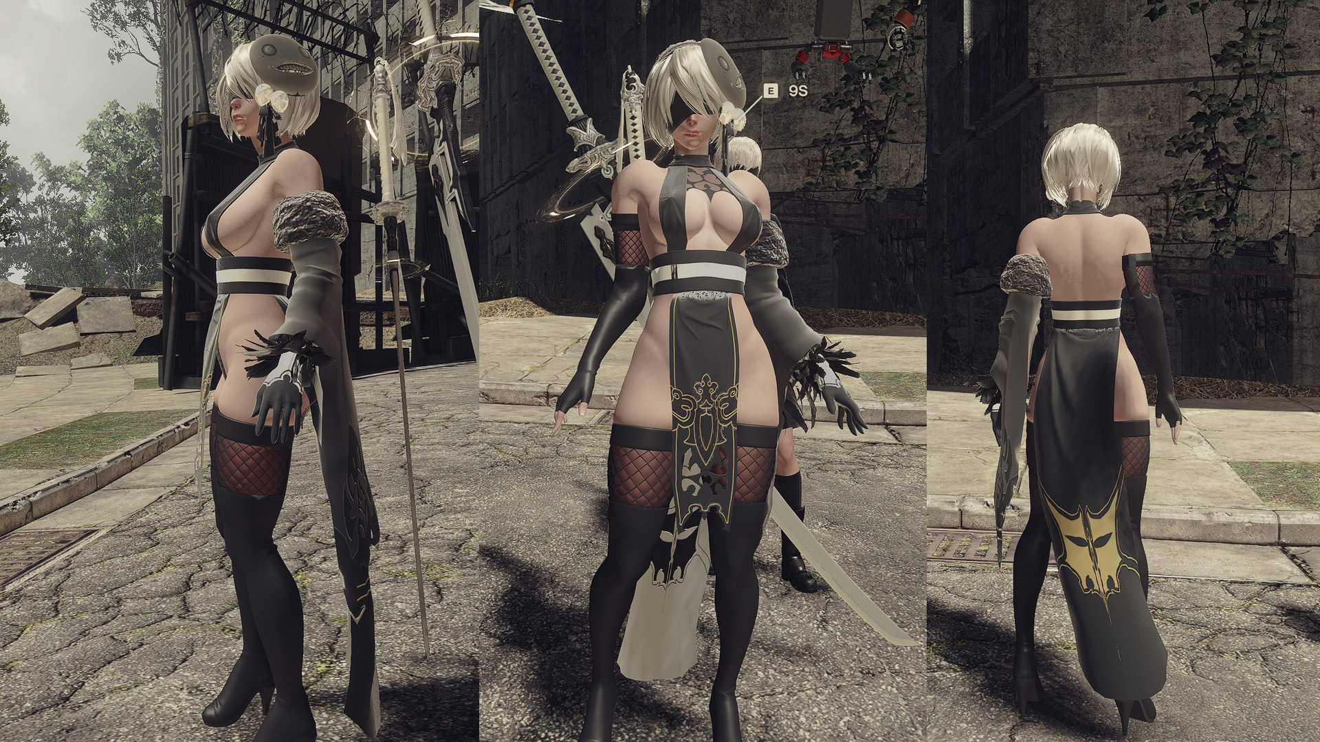 Replaces 2B's default dress with dishwasher1910's 2B Shinobi outfit.