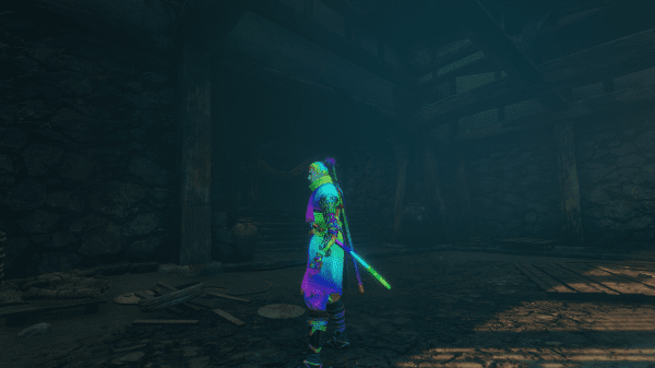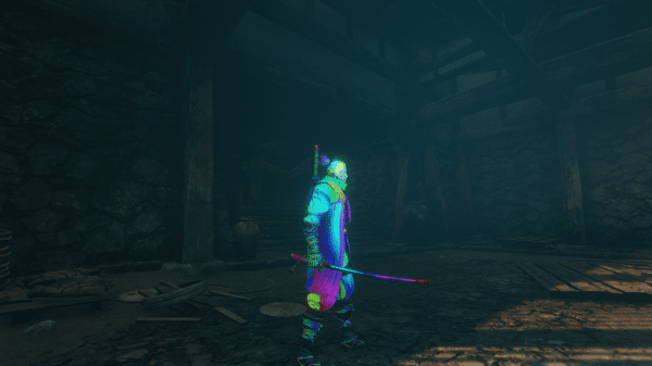 A rainbow outfit and weapons for the one armed wolf.