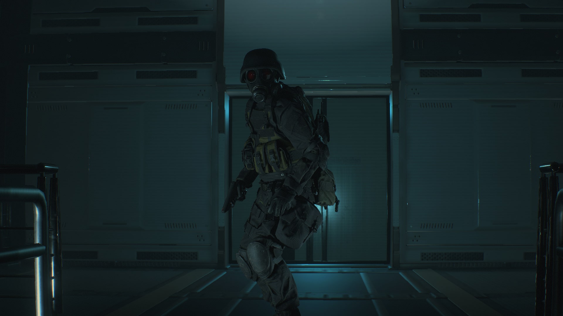 Reaper Hank breaks in, replaces Leon's solid black outfit.