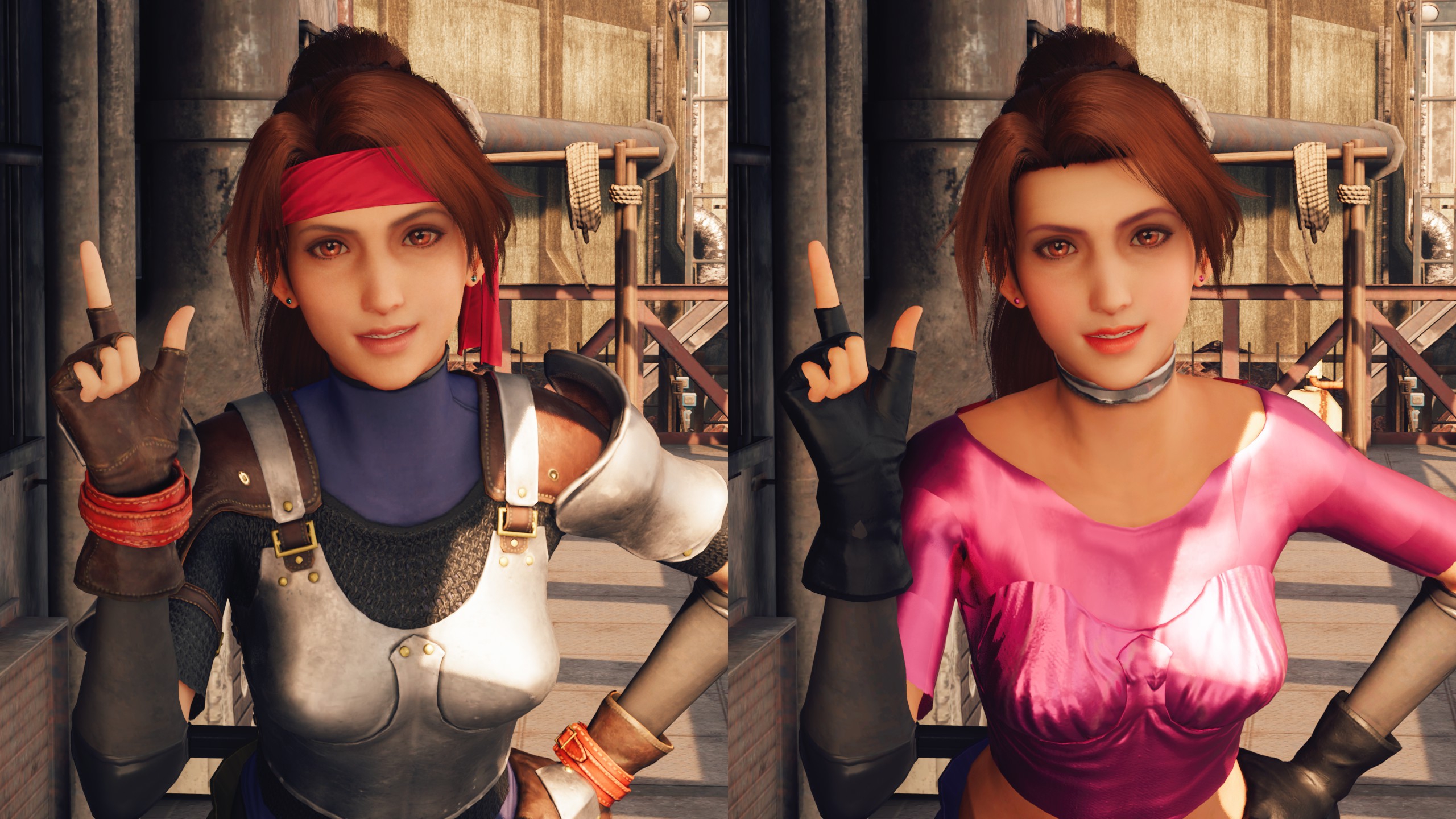 Modifies Jessie's outfit to hot pink and removes her headband and other accessorie.