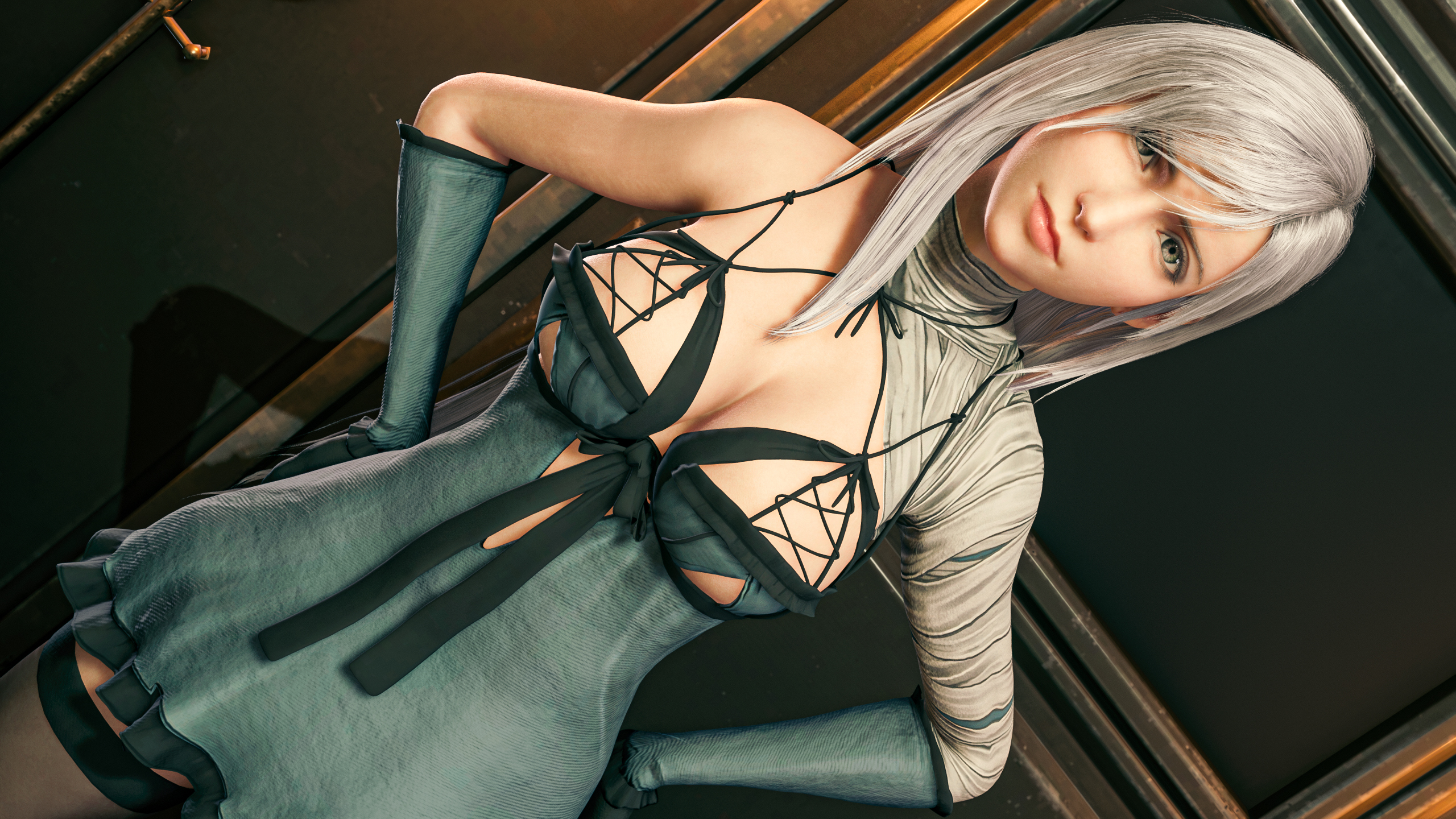 Tifa - Kaine Cosplay, including clothes, panties, gloves, shoes, bandages, white hair and light brown eyes.
