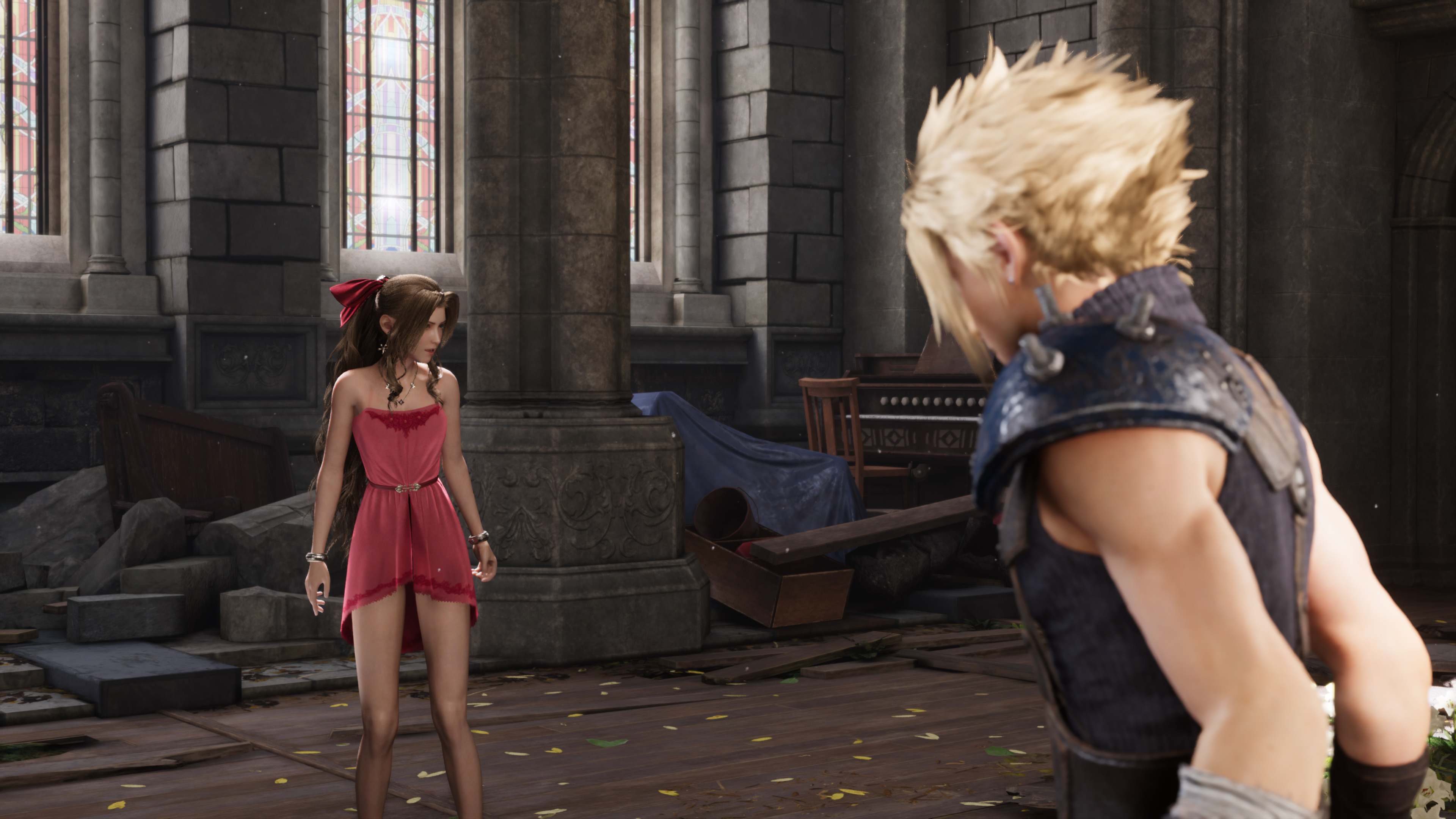 A shorter version of Aerith's Ordinary Dress with shoulder straps removed.