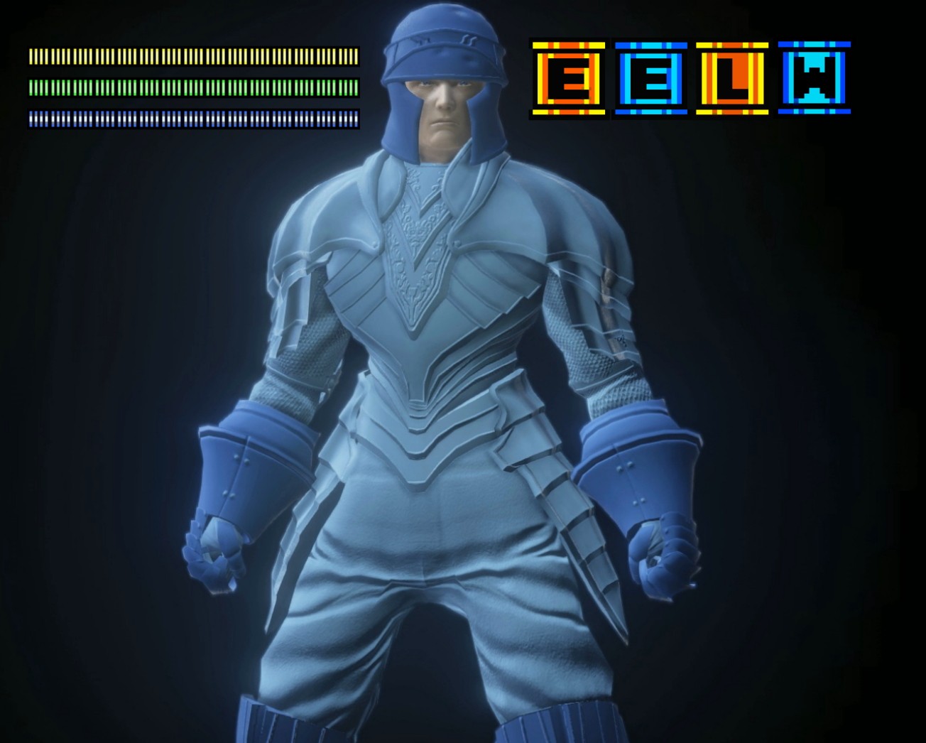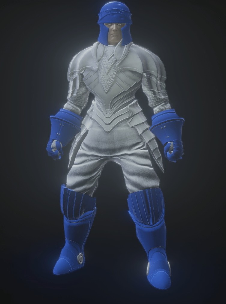 Color and fabric changes to standard helmet, silver knight armor, Katarina gauntlets and Katarina leggings.
