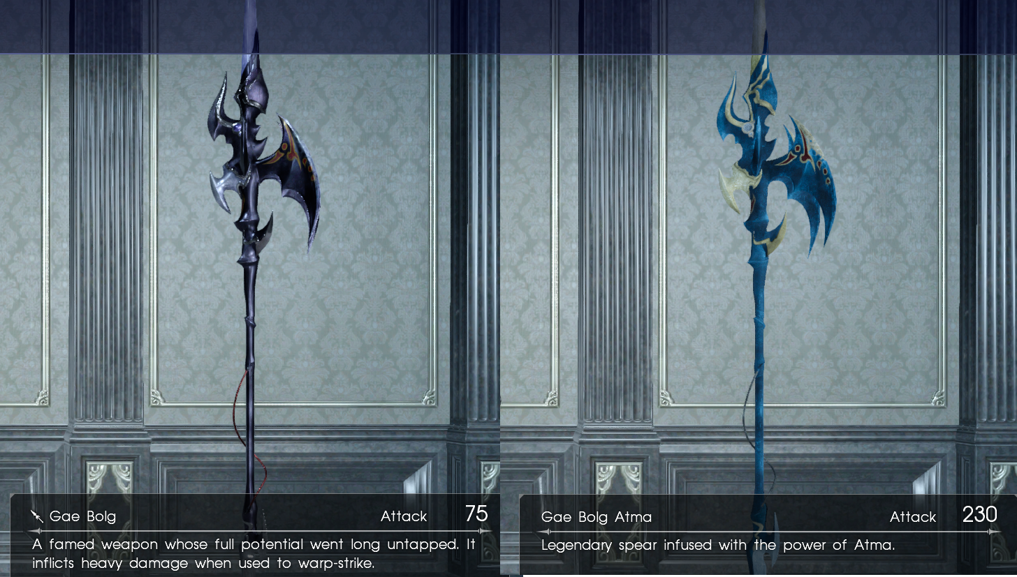 The blue version of Gae Bolg is stronger. Recolored textures to closely match their counterparts in FFXIV.