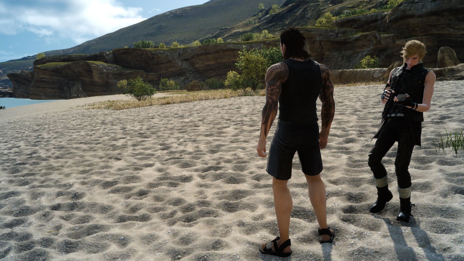 Gladio summer casual outfit, give him shorts and sandals. He's probably wearing his normal outfit (all leather) normally! His legs are from his AC costume. UPDATE: Manually tweaked his skin texture to make it look a lot better!