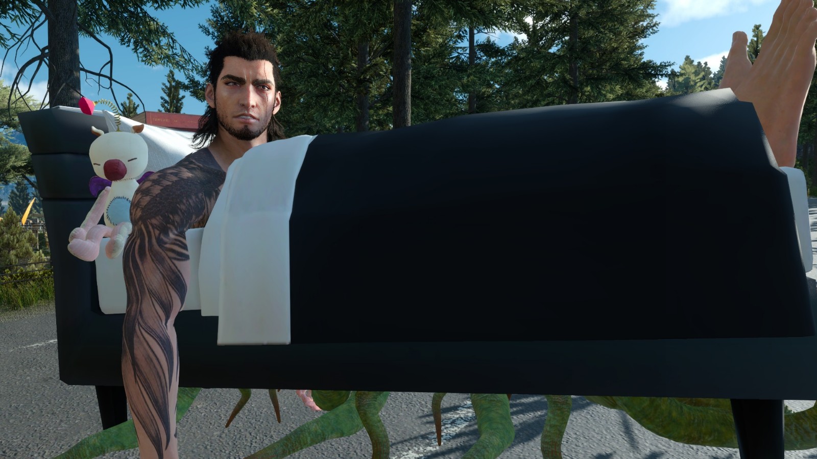 Staying at random motels around Eos, Gladio's sure to have a bad room or two... I decided to ramp up the absurdity of this mod even more by adding in the proverbial 'monster under the bed'!