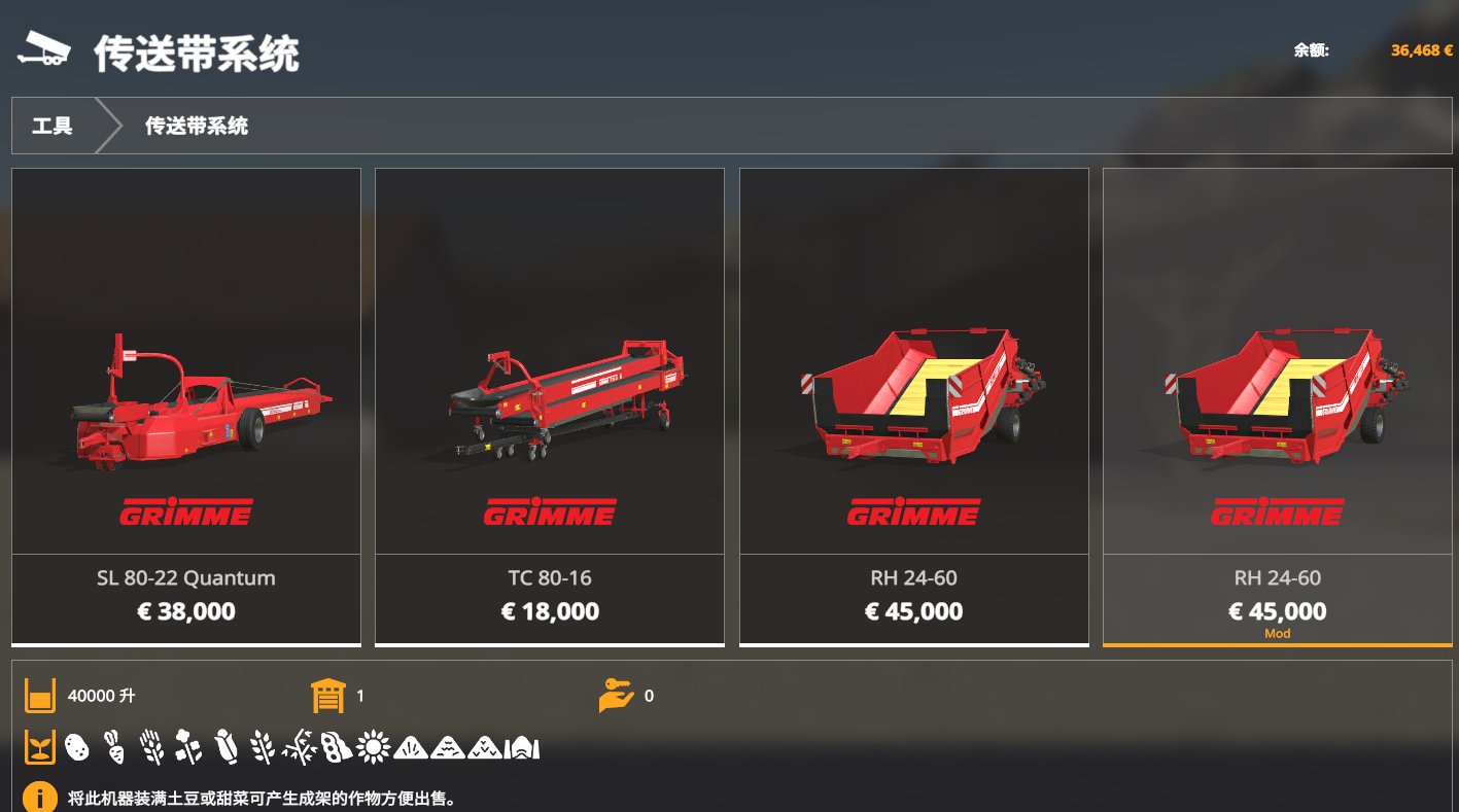 Extracted from the machine that comes with the game, adding a variety of craftable crop trays. The tray capacity can be modified by itself in the data\objects\pallets\fillablePallet\fillablePallet.xml file in the game directory