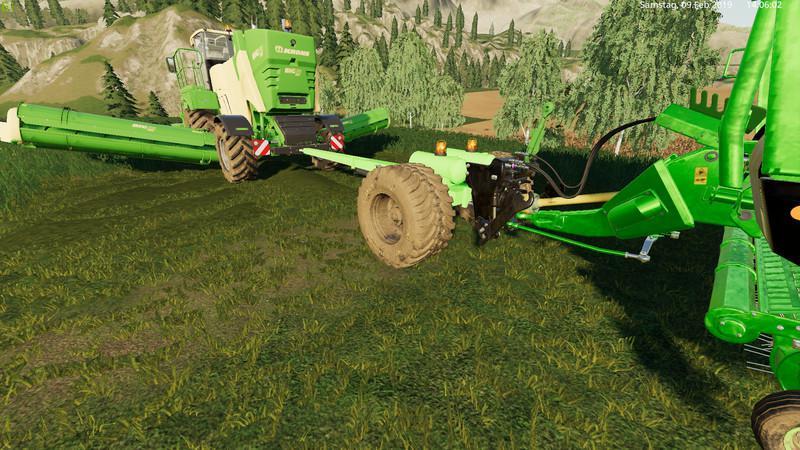 A trolley that can be mounted on the rear of the harvester