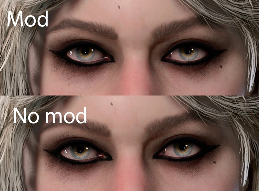 Various bits and bobs I've made for my character, incl. face, tattoos, and makeup edits. See screenshots for reference.