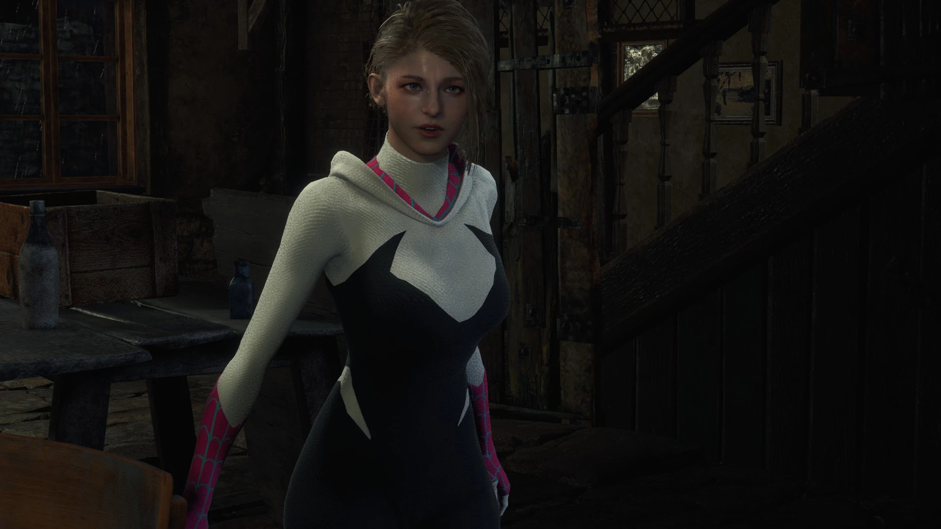 Describe: Ashley cosplaying as Spider-Gwen Author: NEGAARMAX Install Download compressed package Install Fluffy Manager 5000 Extract the RAR file to Fluffy Manager 5000\Games\RE4R\Mods Open Fluffy Manager 5000 and click on the name of the mod and make sure it is installed in the log in the lower left corner