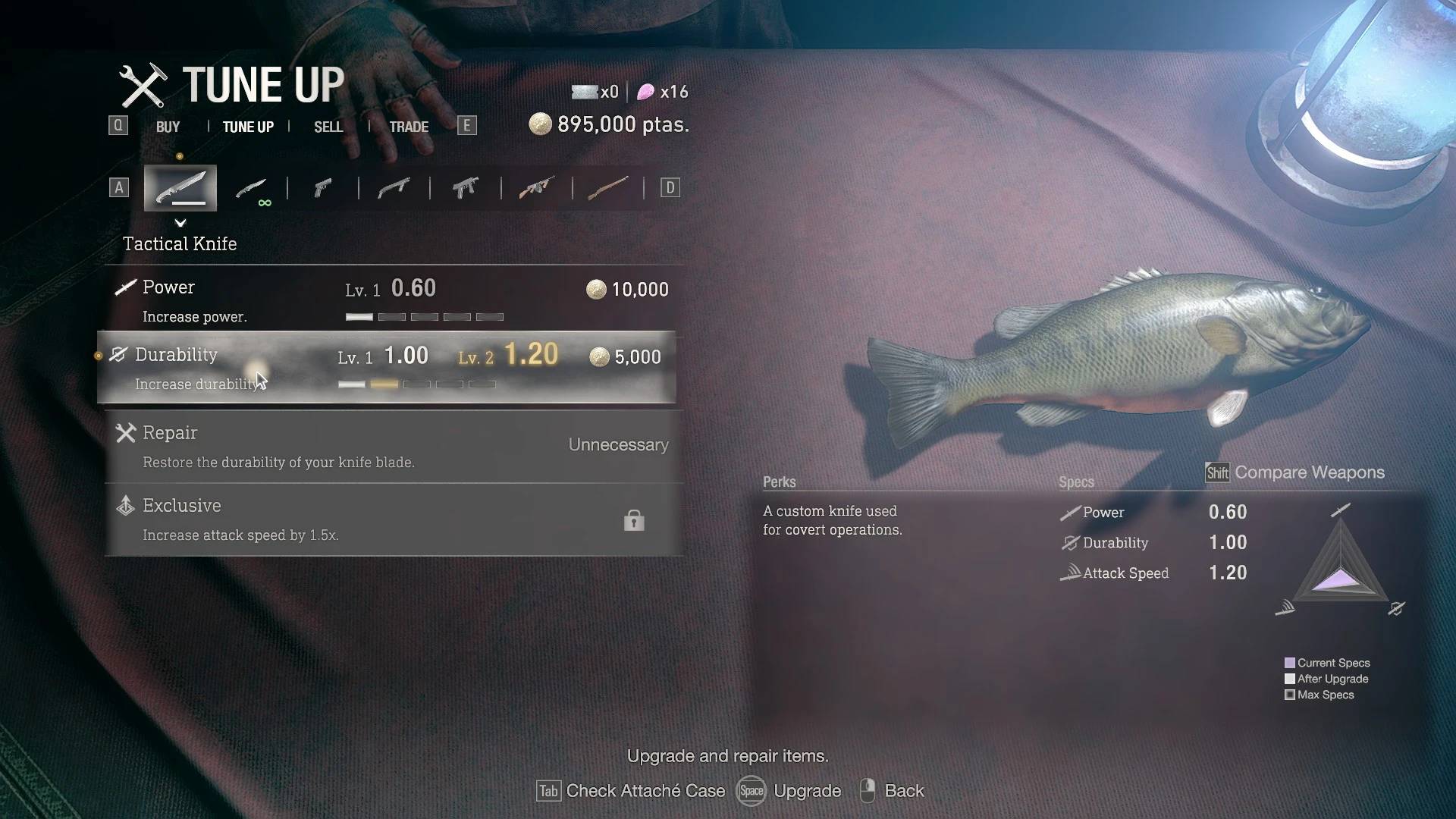 Describe: Replaces every knife variant with a fish. Author: linkthehylian - JTeghius Kittius Install Download compressed package Install Fluffy Manager 5000 Extract the RAR file to Fluffy Manager 5000\Games\RE4R\Mods Open Fluffy Manager 5000 and click on the name of the mod and make sure it is installed in the log in the lower left corner